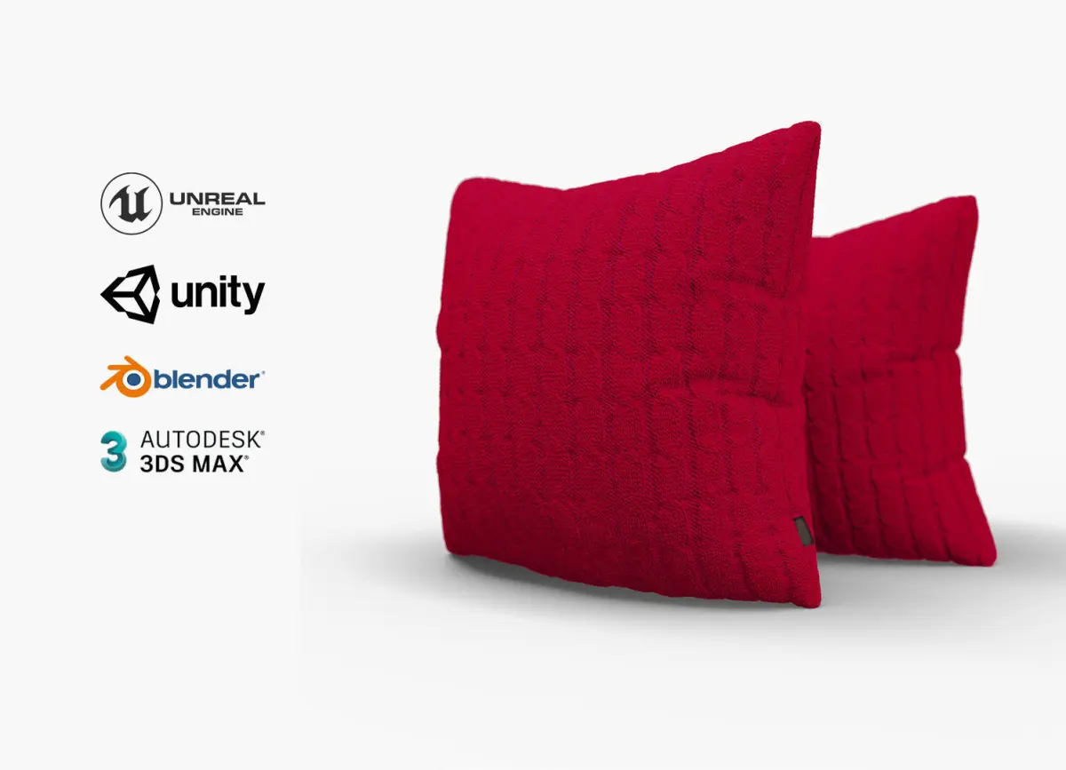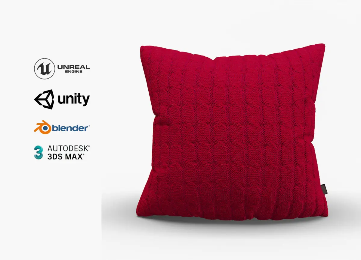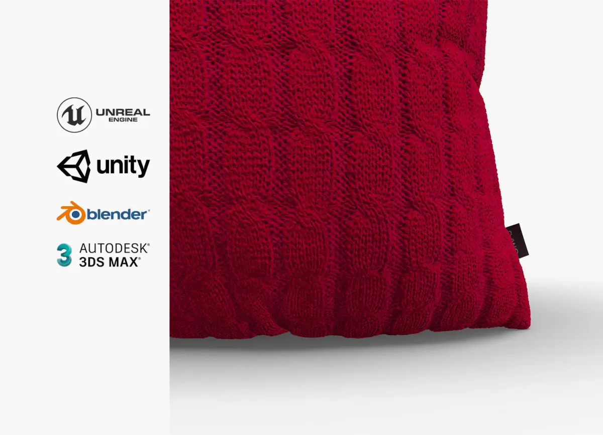 Just a simple but beatiful knitted cushion with a chain pattern, color red, low poly count yet enough vertices to ensure a good and smooth deformation, it includes 2 positions, one up right and another one laying down.