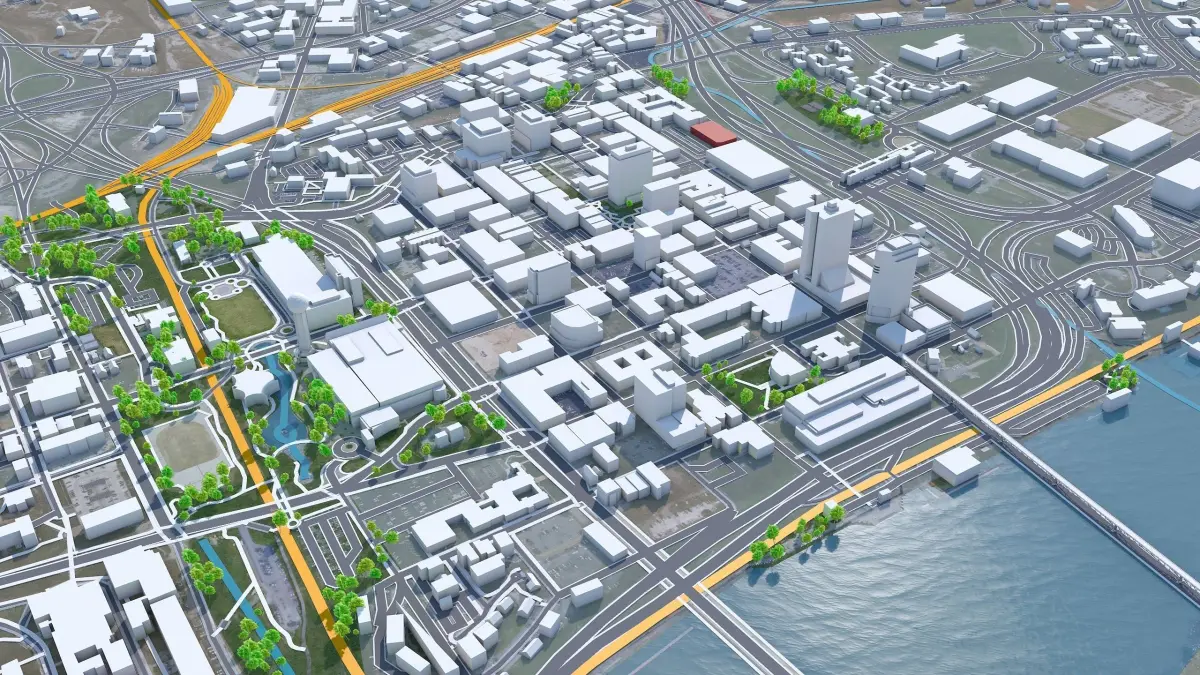 Accurate 3D city model and its surrounding area based on GIS dataFiles Included: