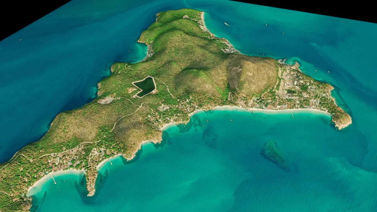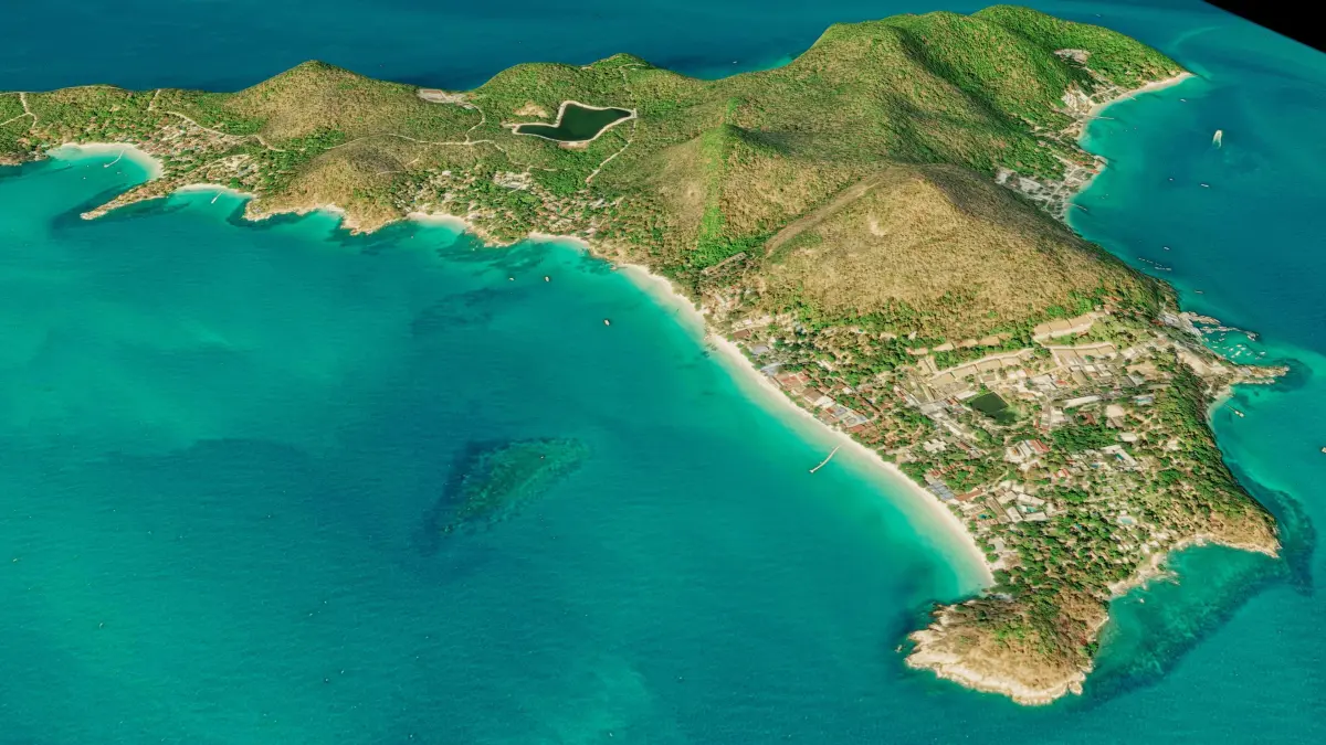Ko Samet Island 3d model terrain. 3d model of the Island of Ko Samet with its landscape of mountains, beaches and forests.