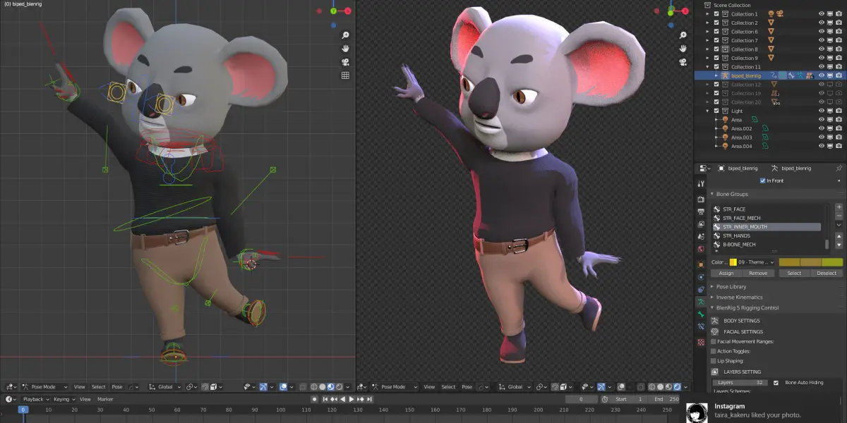 A Rigged Character with full-body, t-shirt, pants, shoes, mouth, teeth, tongue