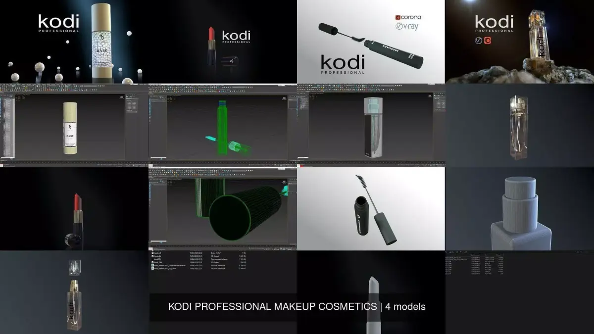 WOMENS PERFUME, gel polish, mascara, lipstick, base.All preview images shown, rendered with Vray Next. A few screenshots of the model in the viewports of 3ds max.