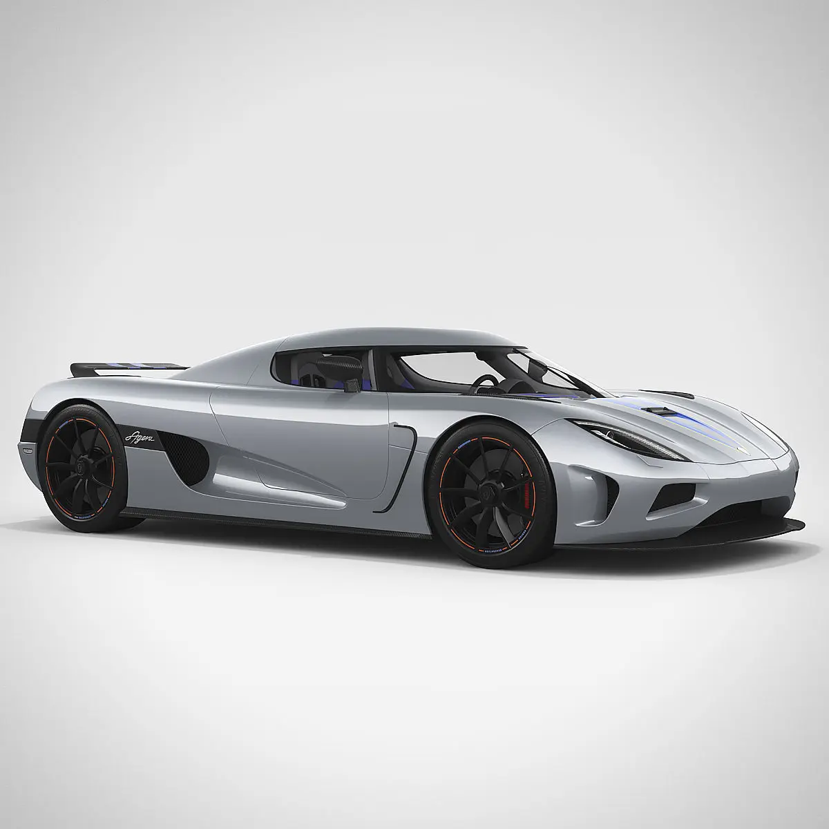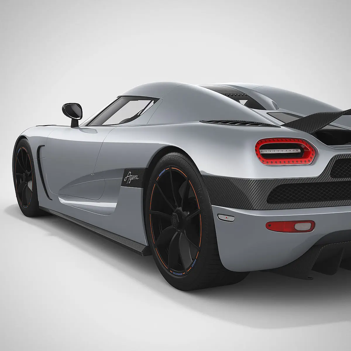 Koenigsegg agera 3d model created in 3dsmax 2012 with Vray materials.Polycount with Turbosmooth off: 143000Polycount with Turbosmooth on (iterations set to 1): 811000Modeled in real world scale and metric unit.All objects, materials and textures are properly named.Objects organized in layers and groups.This model contains 17 textures: (4) 4000 x 4000 (7) 2000 x 2000 (5) 800 x 800 (1) 500 x 500Lighting setup is not included in the package.
