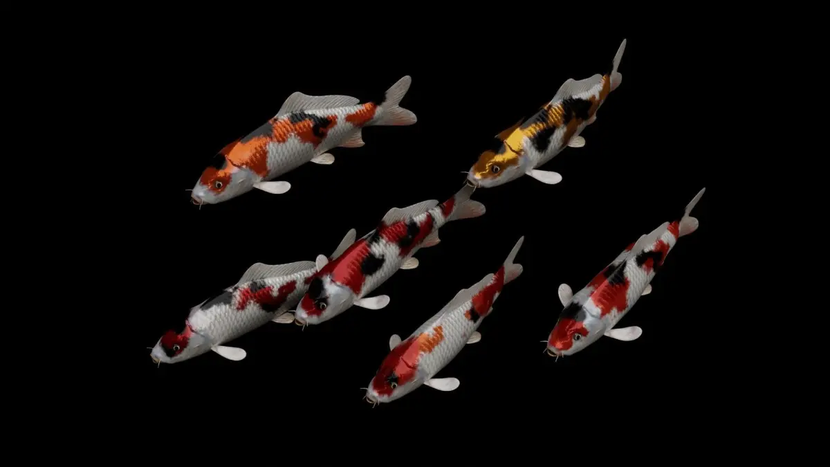 Koi is an informal name for the colored variants of C. rubrofuscus kept for ornamental purposes. There are many varieties of ornamental koi, originating from breeding that began in Niigata, Japan in the early 19th century. Several varieties are recognized by the Japanese, distinguished by coloration, patterning, and scalation. Some of the major colors are white, black, red, orange, yellow, blue, and cream. The most popular category of koi is the Gosanke, which is made up of the Kohaku, Taisho Sanshoku, and Showa Sanshoku varieties.