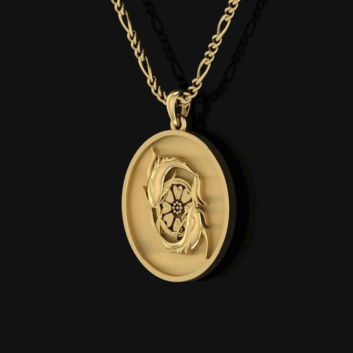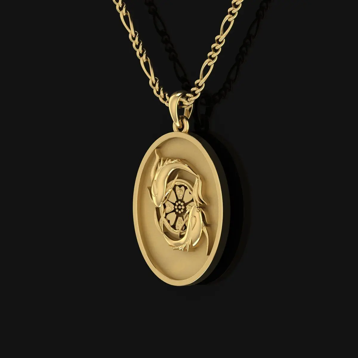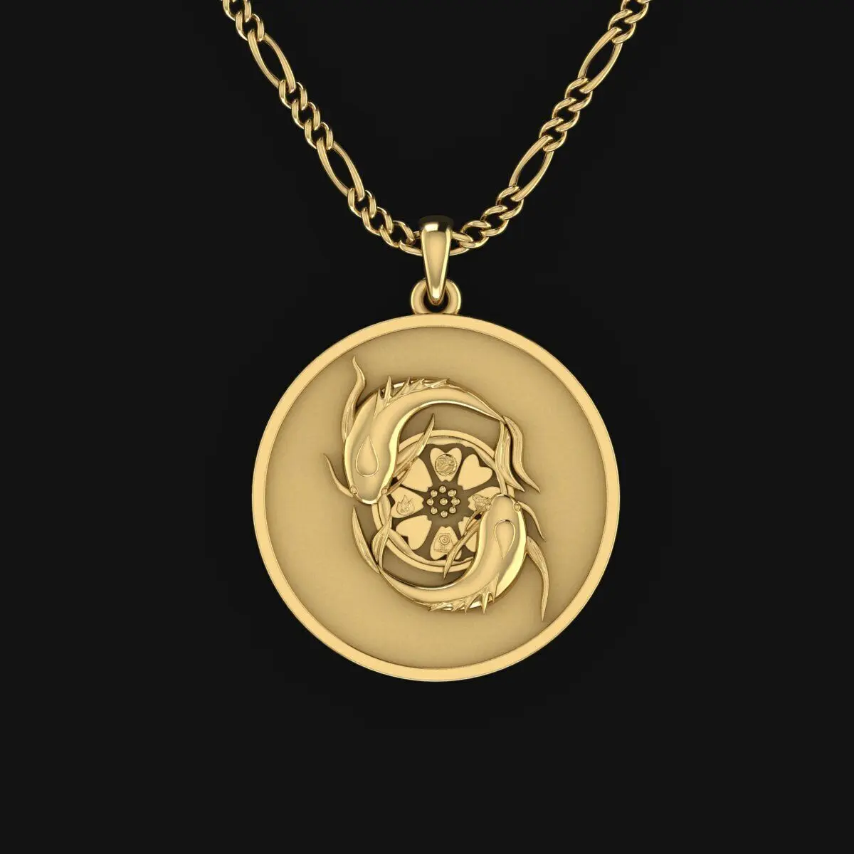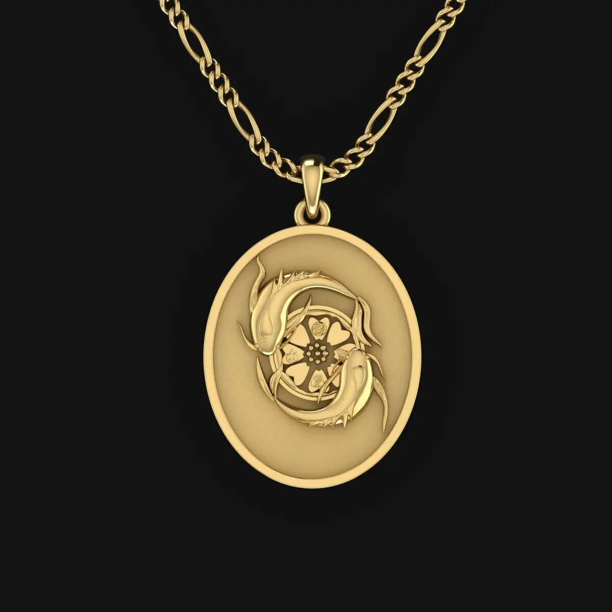 The “Koi Fish & Lotus Medallion” is a graceful fusion of Eastern symbolism and refined design. Two koi fish swim in an eternal circle, representing yin and yang, persistence, and the balance of life. Their elegant flow and mirrored form suggest continuous movement and harmony. At the center blooms a lotus flower, symbolizing purity, rebirth, and spiritual awakening.