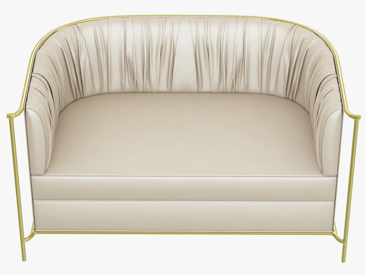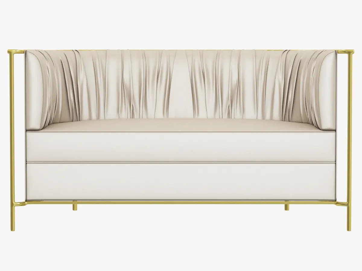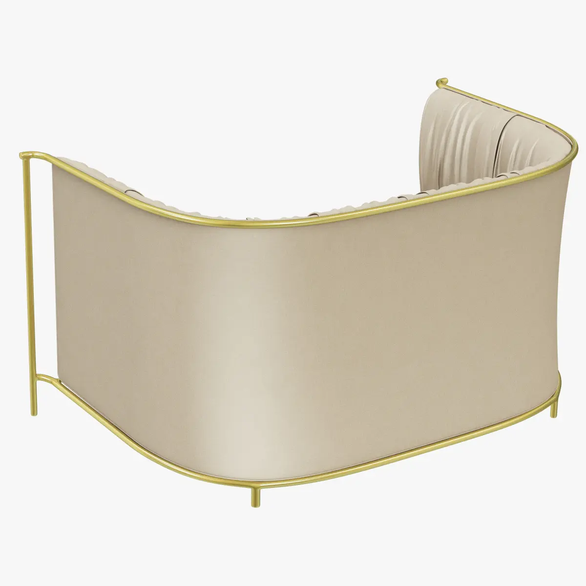 Ignite your desire to be wanted in the comfort of this provocative fully upholstered sofa. A matt gold hammered band outlines its curves the way the mind outlines the female desire