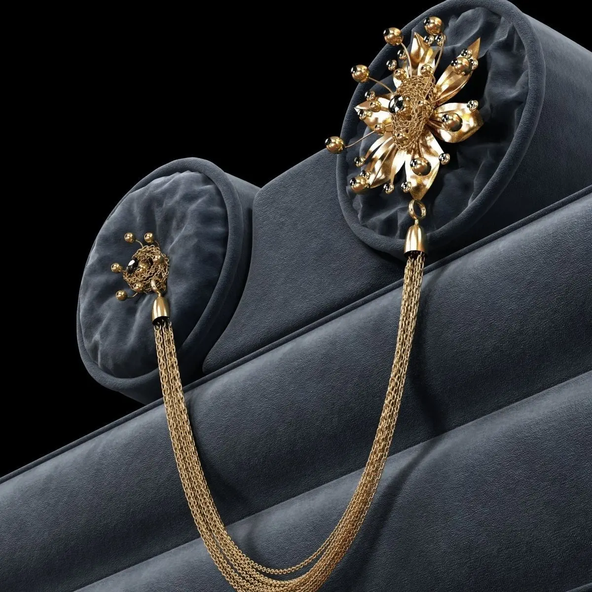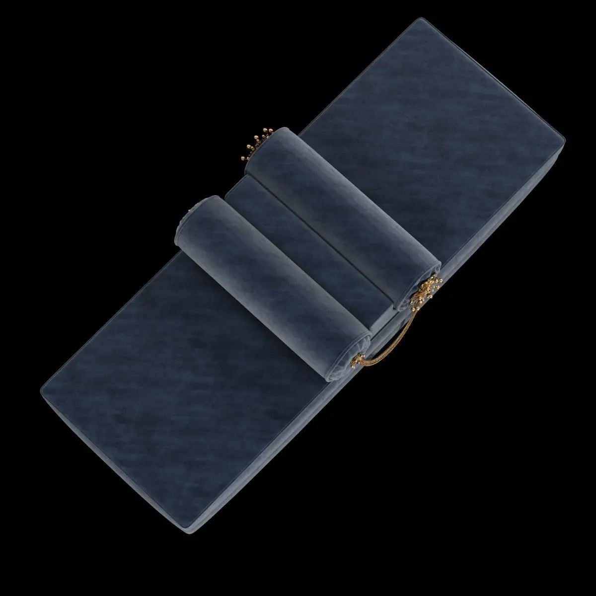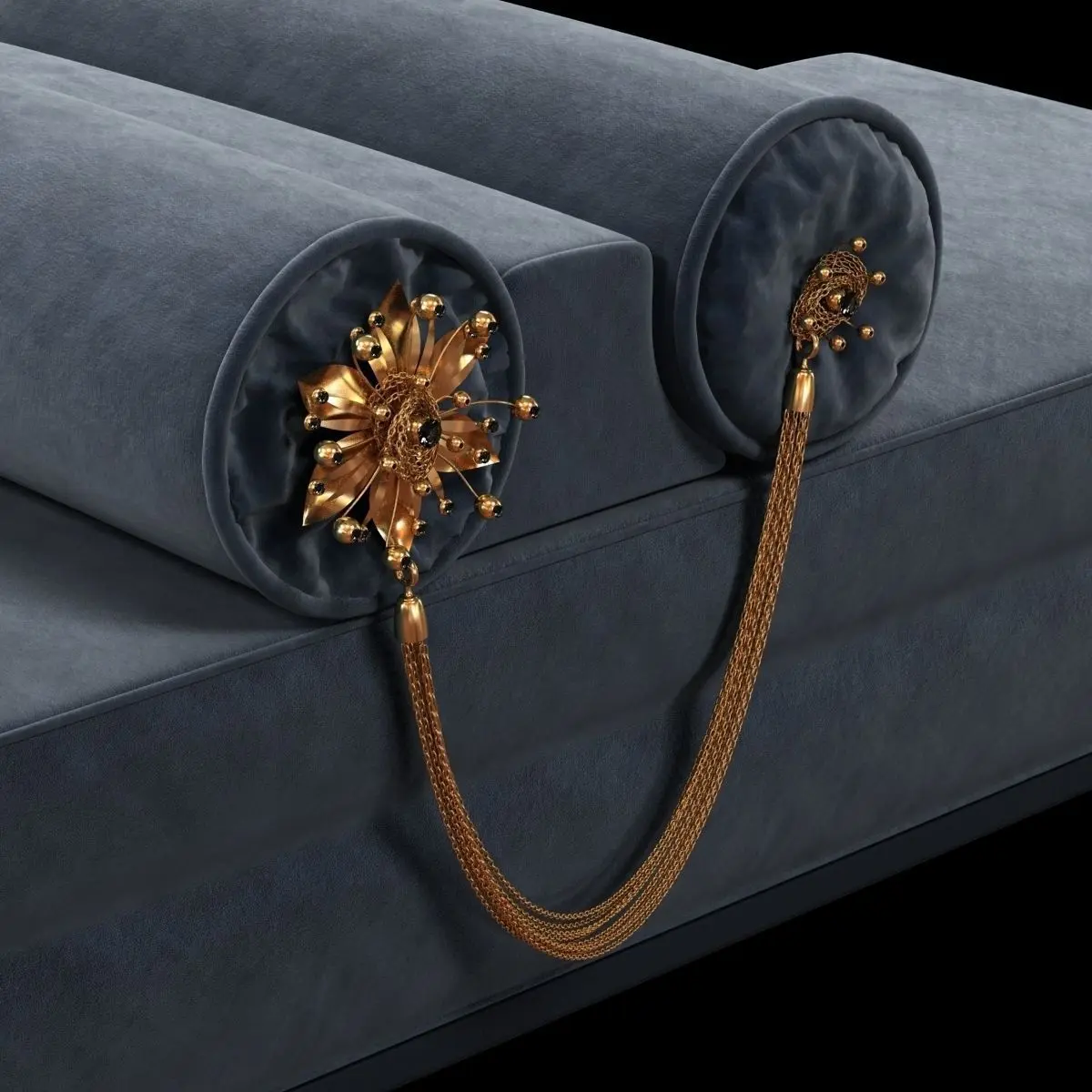 An affair with luxury. Shown upholstered in a sensuous black velvet, with a solid wood high-gloss lacquer base and 2 crystal jeweled bolsters.Upholstery: KOKET Fabric Collection; or COM/COL (4mts required | 4.00 yards). Base: Lacquer in any RAL Classic color. Jewel: Availble with or without 2 Floral Jewels in Bronze or Pewter with clear crystals.