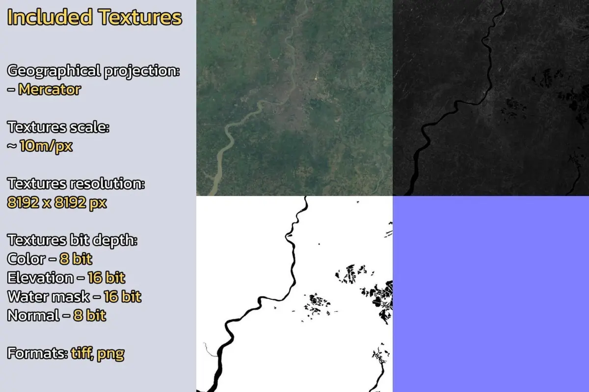 Warning: minor clouds/artifacts may be present on the diffuse color satellite texture due to the nature of the dataset. Check product images.