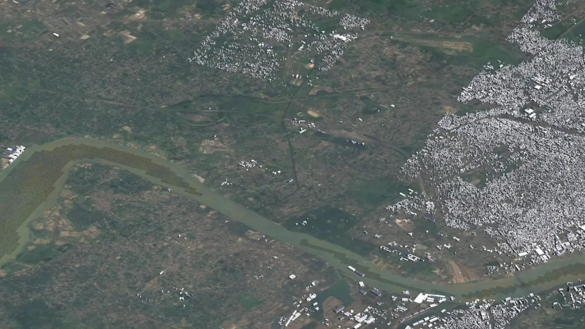 Originally created in Houdini 19. Final images rendered in Houdini. Data source is ASTER GDEM V3, ASTER WATER V1, Open Streep Maps 2022, Copernicus Sentinel 2016.