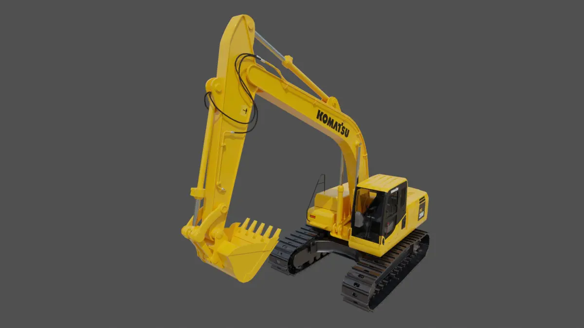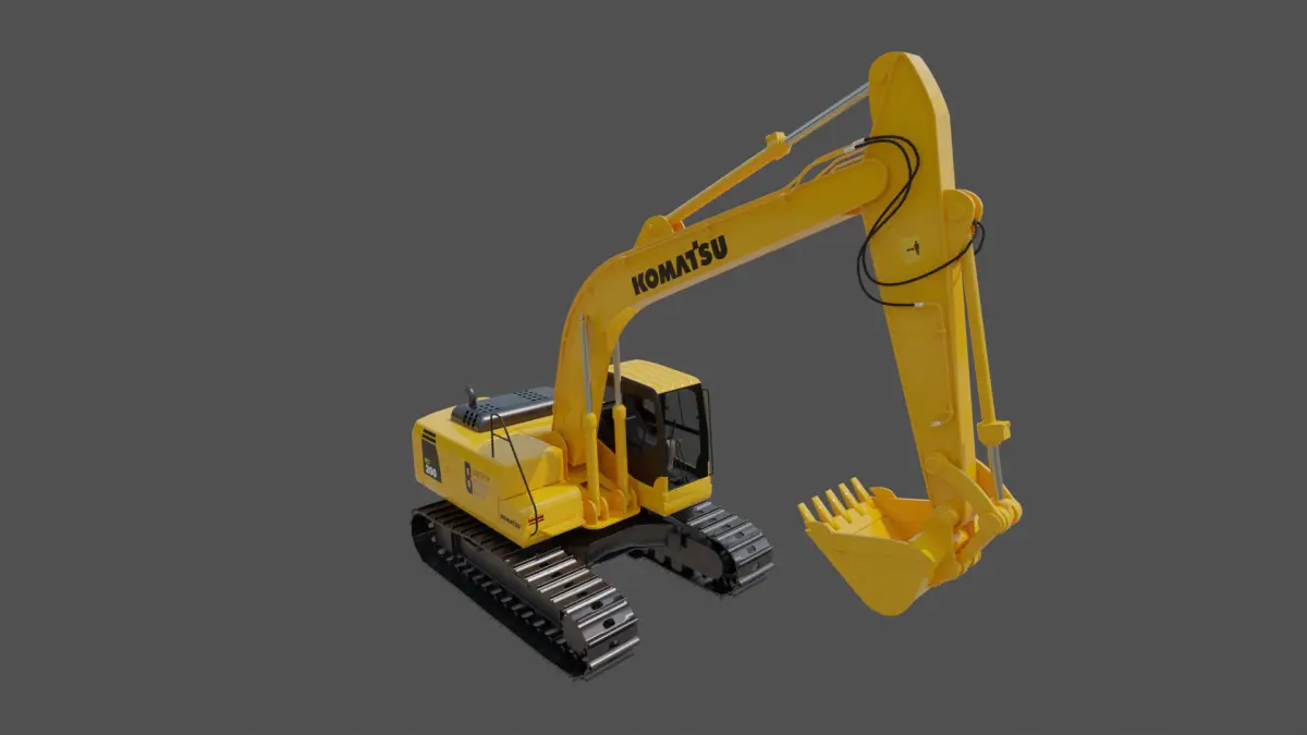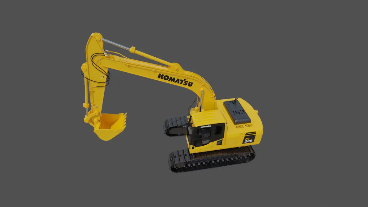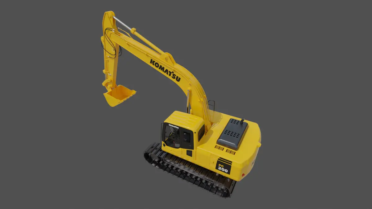 Komatsu PC200-8 Digger Realistic looking pbr 3D model Ideal for close-up renders.