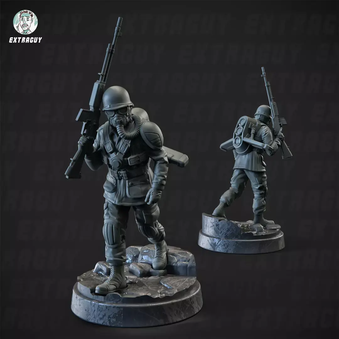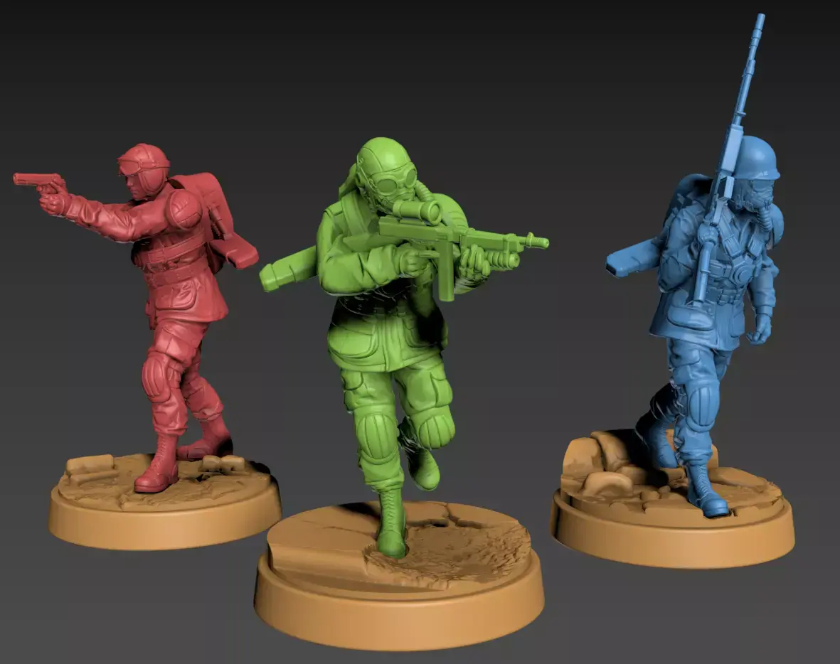 Ola, I present you the Konflickt 47 Allied 3 Soldiers 32mmSoldier height is about 32mm in height set to scale to a 32mm Human3 soldiers in total with 3 different weapon3 Custom bases
