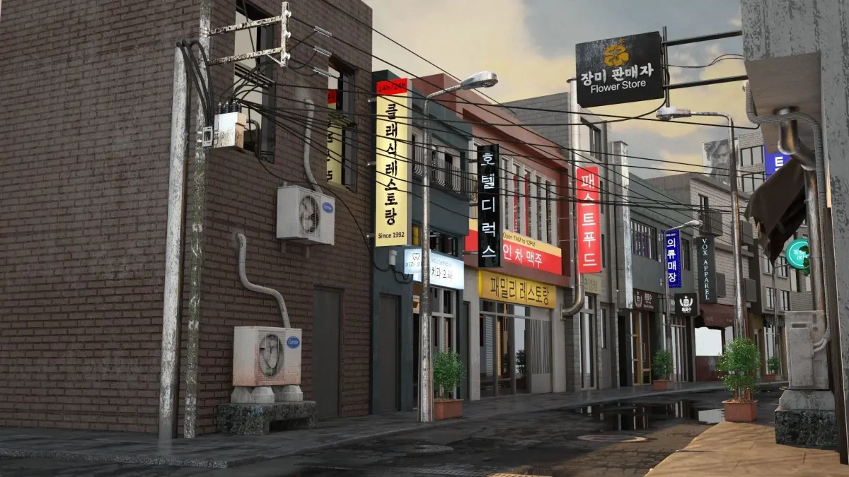 Korean Street3D Model street of seoul korean houses, including stores and poles lighting with some plants between poles.This 3D Model Scene content exterior scene of korean houses and stores.Korean Street Exterior Design made with Cinema 4D using Vray 3.7All Textures and Materials are included.Native : Cinema 4D + Vray 3.7Format Available :