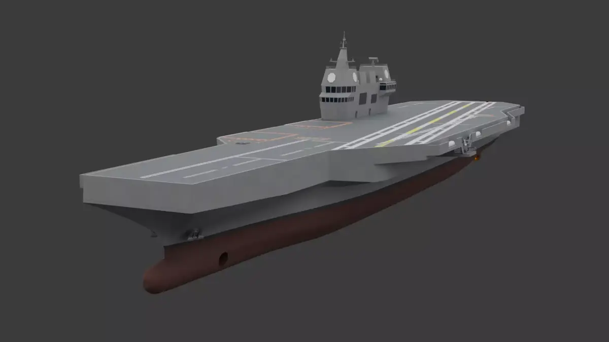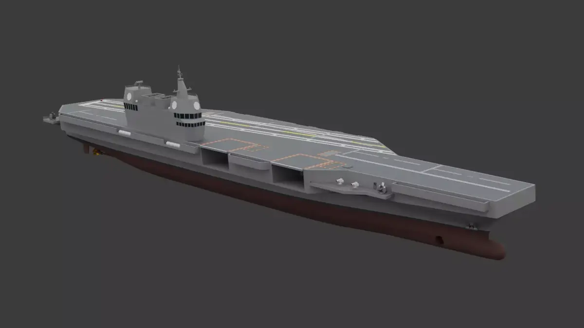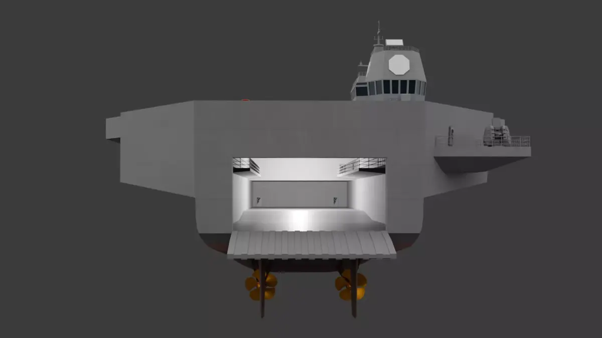 - This vessel shares the same silhouette as the aircraft carrier designs previously revealed during the now-canceled CVX (Light Aircraft Carrier) project. In fact, comparing it to Hanwha Ocean’s previous CVX proposals reveals a striking resemblance. This 41,500-ton command ship is designed to carry unmanned aerial vehicles (UAVs) and helicopters while supporting aircraft launches via the CATOBAR (Catapult Assisted Take-Off But Arrested Recovery) system. Furthermore, it features a rear well dock, similar to an amphibious assault ship, allowing for the deployment of amphibious assault vehicles and other landing craft.