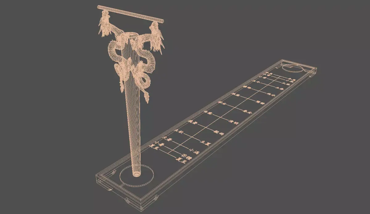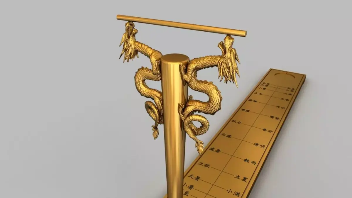 The Gyu-Pyo is one of the earliest Korean sundials, developed to measure time from the length and position of a shadow cast by the sun.This highly detailed 3D model represents the traditional dragon-decorated vertical rod and calibrated measurement board used in the Joseon Dynasty.