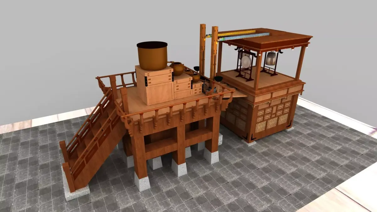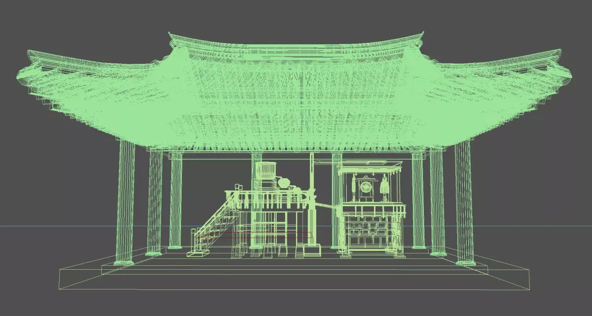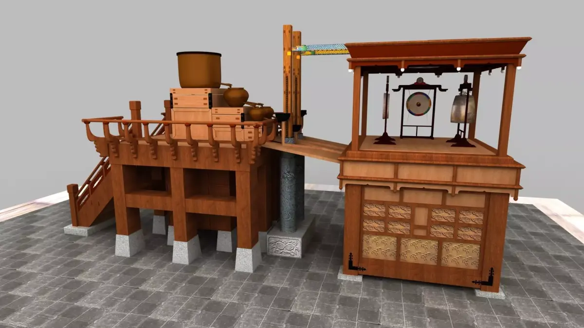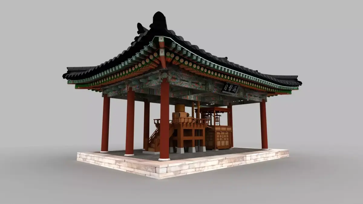 This model represents a complete structure of the Jagyeokru Water Clock Pavilion, featuring: