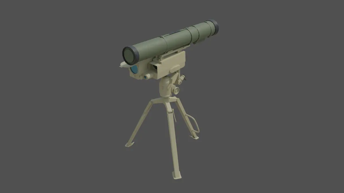Cornet Realistic looking pbr 3D model Ideal for close-up renders.Game-ready with 2K and 4K PBR Textures made in Substance Painter.the model has three parts (body-Tripod-missile) each part has one pbr Texture.