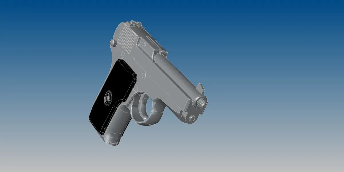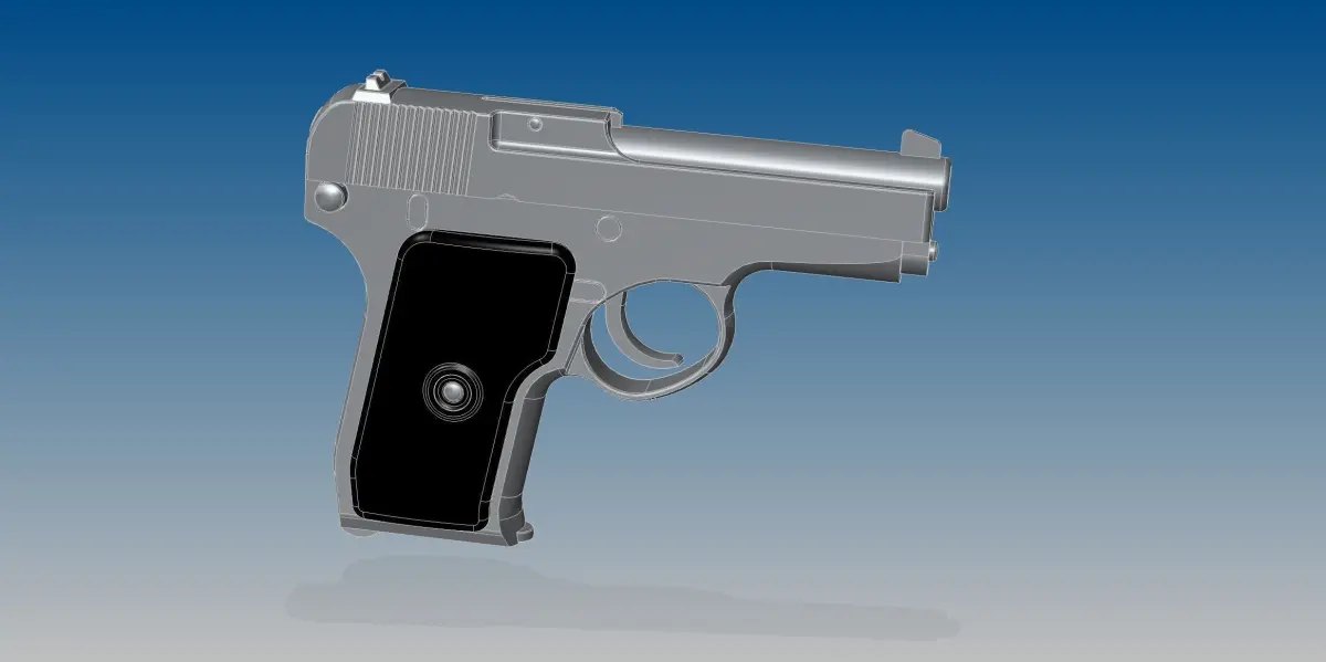 Full assembled model of Soviet pistol TK-26 and its .25.ACP