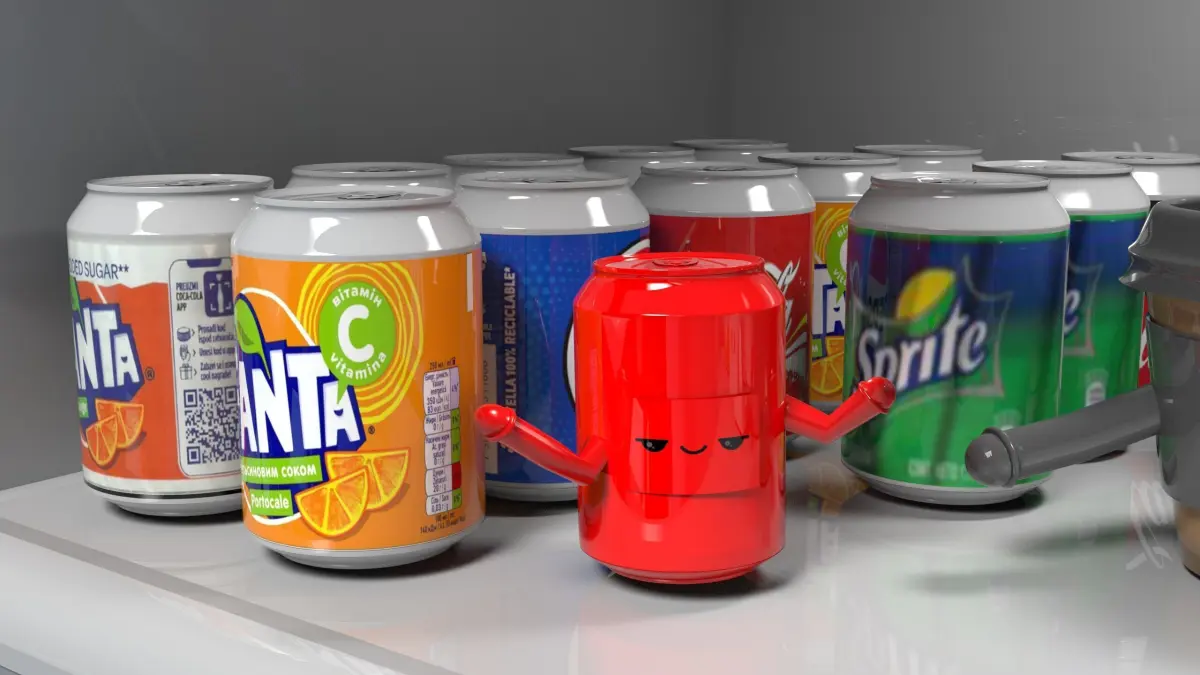 Fizzy soda effects, liquid splashes, and appealing lighting