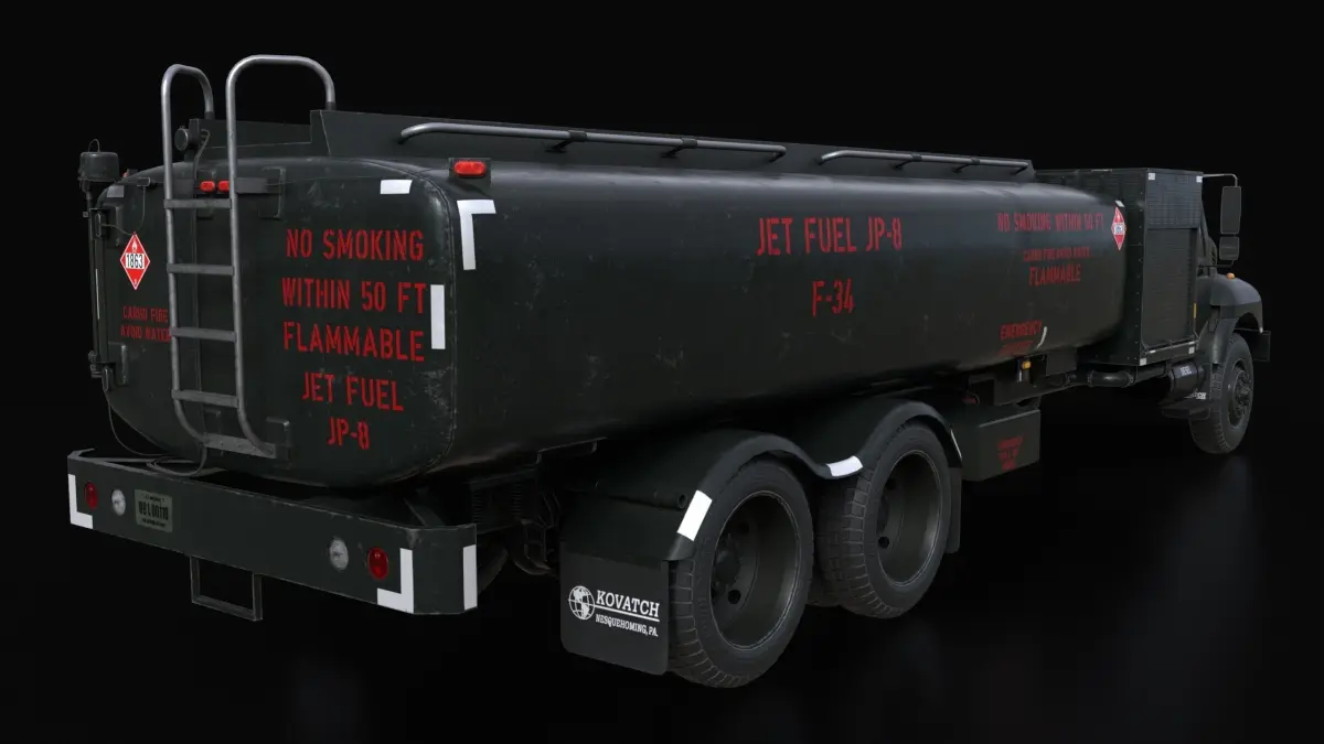 The R-11 aircraft refueler (developed by Kovatch Corporation) replaced the previous R-9 in service with the United States Air Force (USaF). Currently it is the primary mobile refueling vehicle of the USAF. It is based on a Navistar International Model 7400 SBA 6x4 chassis.Realistic 3D model of Kovatch R11-6000 Refueler in military green color with interior.