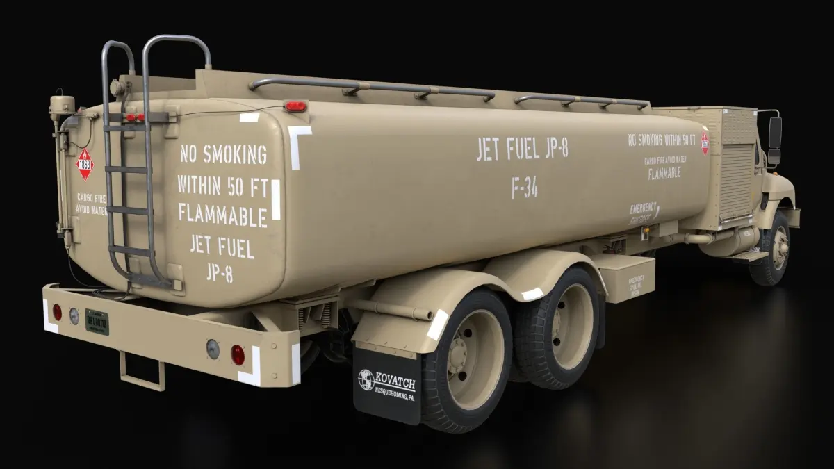 The R-11 aircraft refueler (developed by Kovatch Corporation) replaced the previous R-9 in service with the United States Air Force (USaF). Currently it is the primary mobile refueling vehicle of the USAF. It is based on a Navistar International Model 7400 SBA 6x4 chassis.Realistic 3D model of Kovatch R11-6000 Refueler in beige(sand) color with interior.