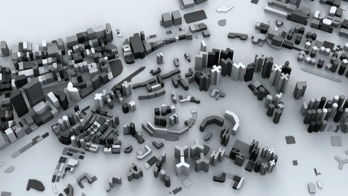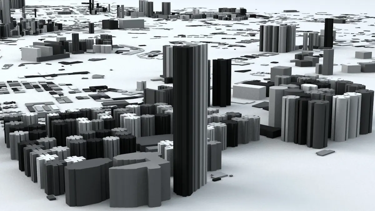- the model is positioned on a flat surface (all buildings are on the “floor” - no elevation data included)