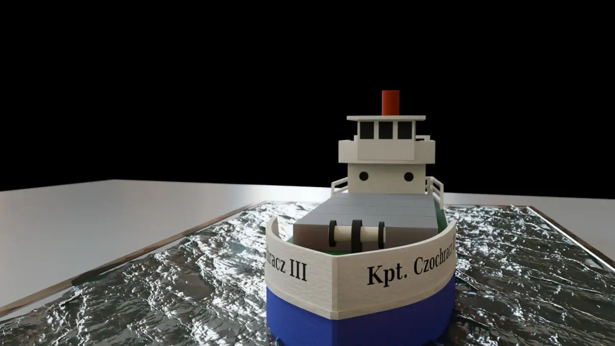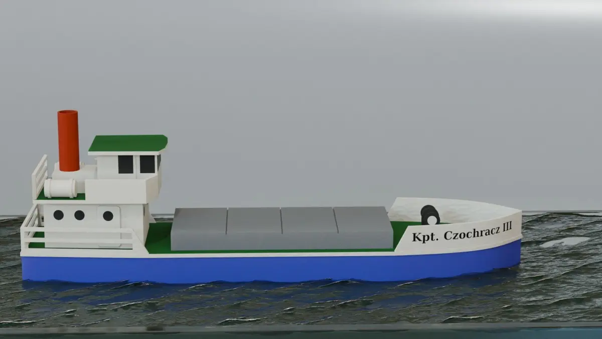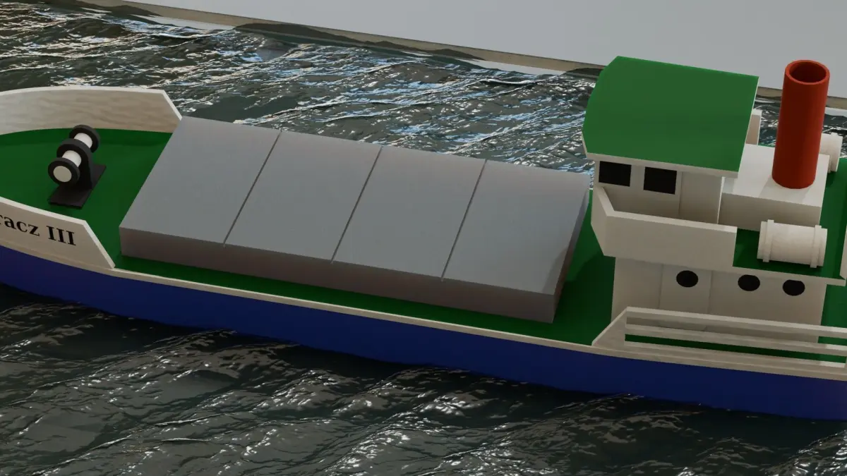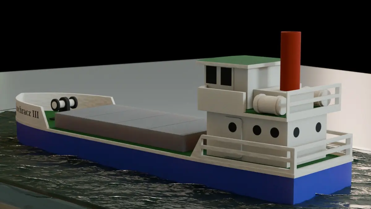 A toy ship that moves a small Cargo ship. You can use as an icon or as a simple element showing a plastic or paper toy.