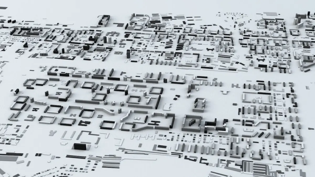 These models are designed to show and present the city/area in the title in a minimalistic concept. They show a close to exact streets and buildings alignments and building heights (excluding parts where there is no or insufficient data to build 3d geometry) therefore they can be used for many purposes but they are not designed to build ie. high precision urbanscape.
