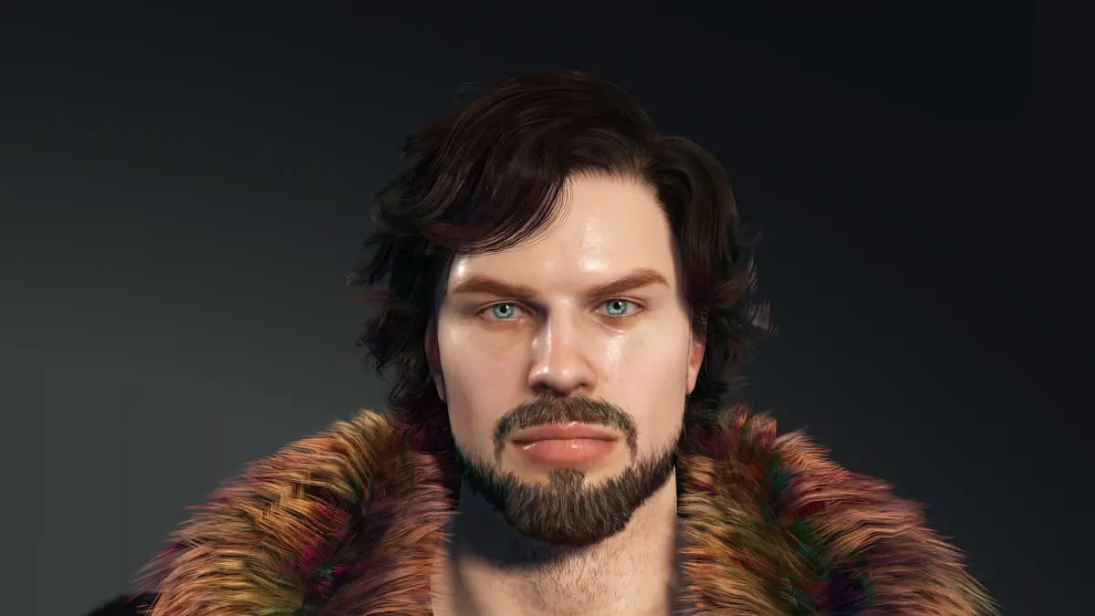 -Separated materials (head, body, arms, legs, vest, pants, boots, beard, gloves, neckless, hair). Separated objects (vest, pants, boots,beard,gloves, neckless, hair, body, mouth, eyes, teeth , tongue and nails).