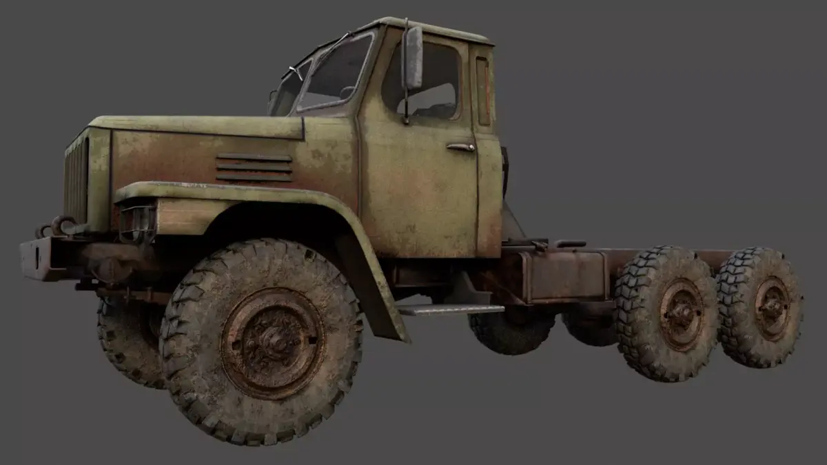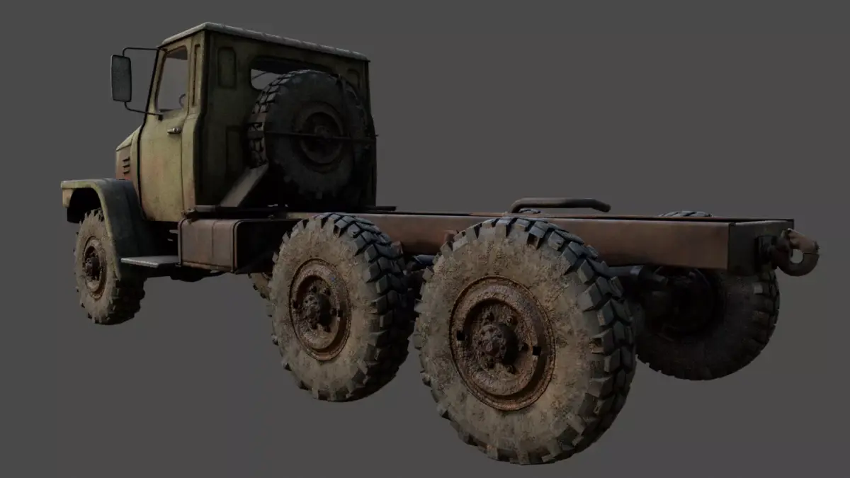 KrAZ-255 Military Truck ChassisA detailed 3D model of the KrAZ-255 6x6 heavy-duty Soviet truck. File Formats: .blend (Native), .fbx, .obj, .gltfTexturing: PBR Workflow (Base Color, Roughness, Metallic, Normal, AO)UV Mapping: Non-overlapping UVs.*********Rigging work in Blender only.*********