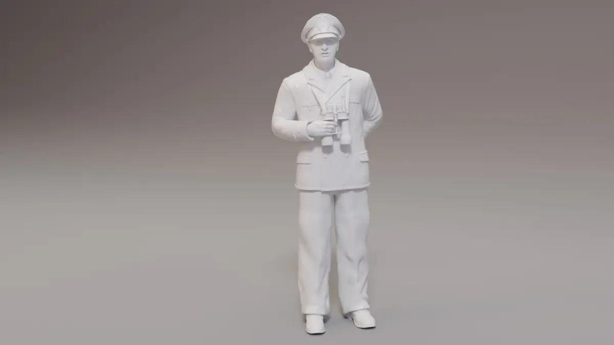 3 Separate officers are included. One With binoculars at the ready, one standing at ease, and one casual / in discussion.