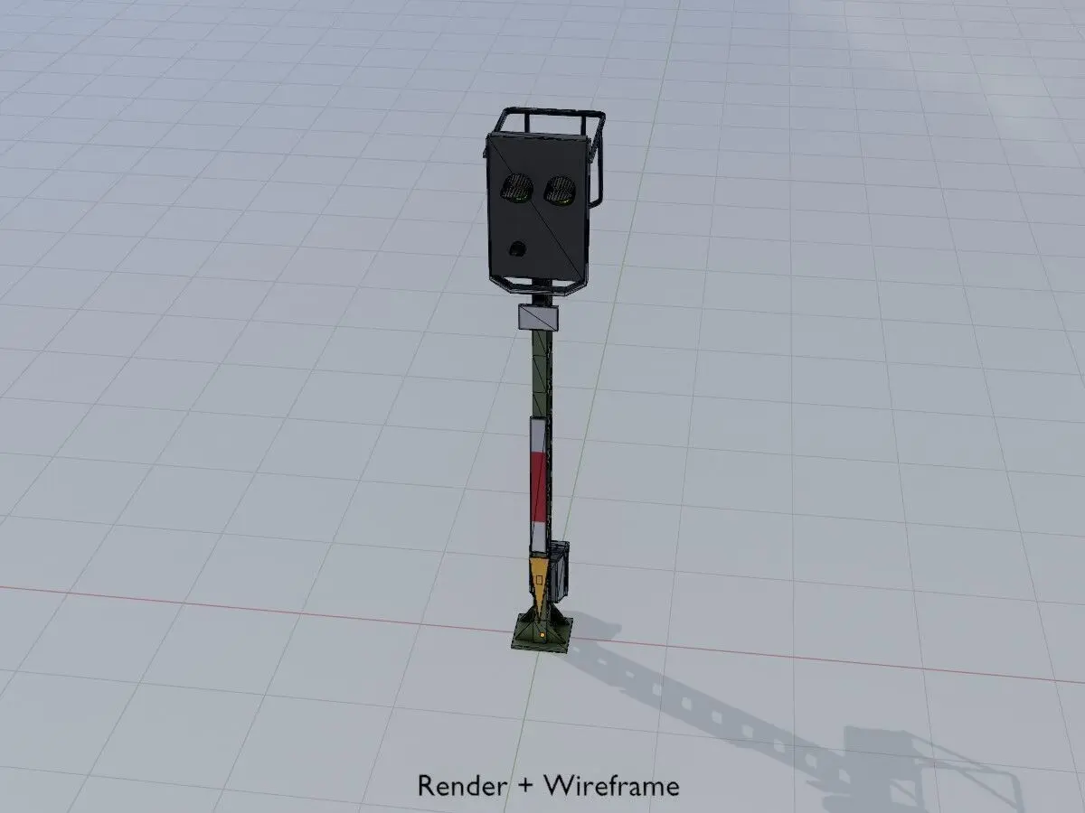 Hier sehen Sie ein 3D-Modell eines KS Eisenbahn Signalmastes 4500mm Version-15.Eisenbahnsignale zeigen an, ob und mit welcher Geschwindigkeit Streckenabschnitte befahren werden dürfen.Das 3D-Modell ist der Realität nachempfunden und hat eine Höhe von 4,5 m. Das Modell wurde für Echtzeitanwendungen wie 3D-Visualisierungen oder Computerspiele entwickelt und optimiert, eignet sich aber auch für komplexe Renderings und wurde verwendet, um ein KI-Bilderkennungssystem für das deutsche Eisenbahnnetz zu trainieren.Um die Platzierung des 3D-Modells so einfach wie möglich zu gestalten, wurden die Einfügepunkte der Objekte sinnvoll auf Höhe des Bodens gesetzt.Die Texturen haben eine Auflösung von 4096 x 4096 px und folgen dem PBR-Workflow (Basic Color, Roughness, Metalness, Normal).