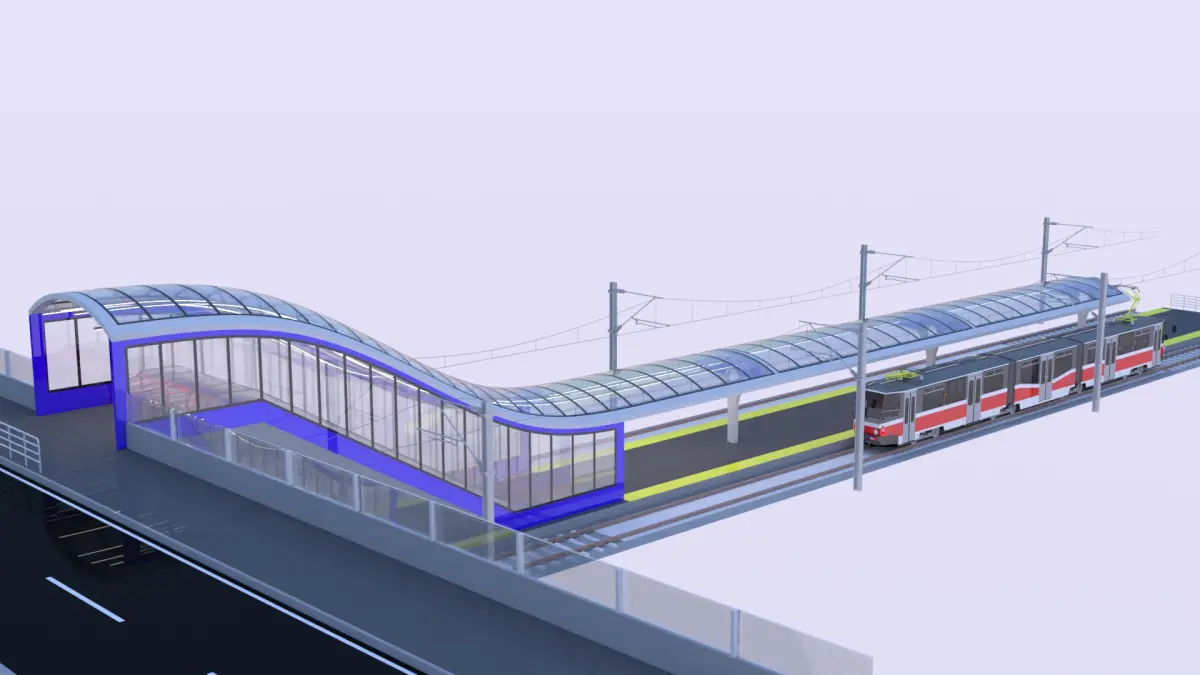 - This is 3D model of tram stop with KT8D5 tram.