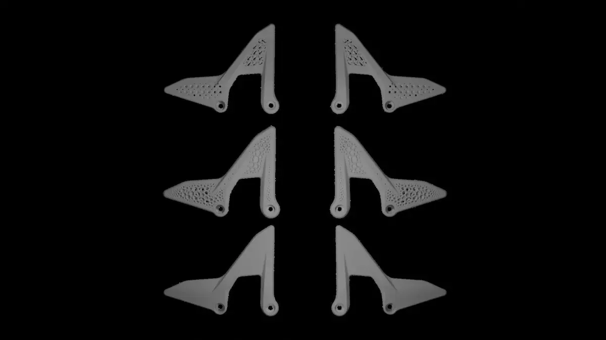 then I modified the part one with lattices, one with voronoi and topology optimisation.