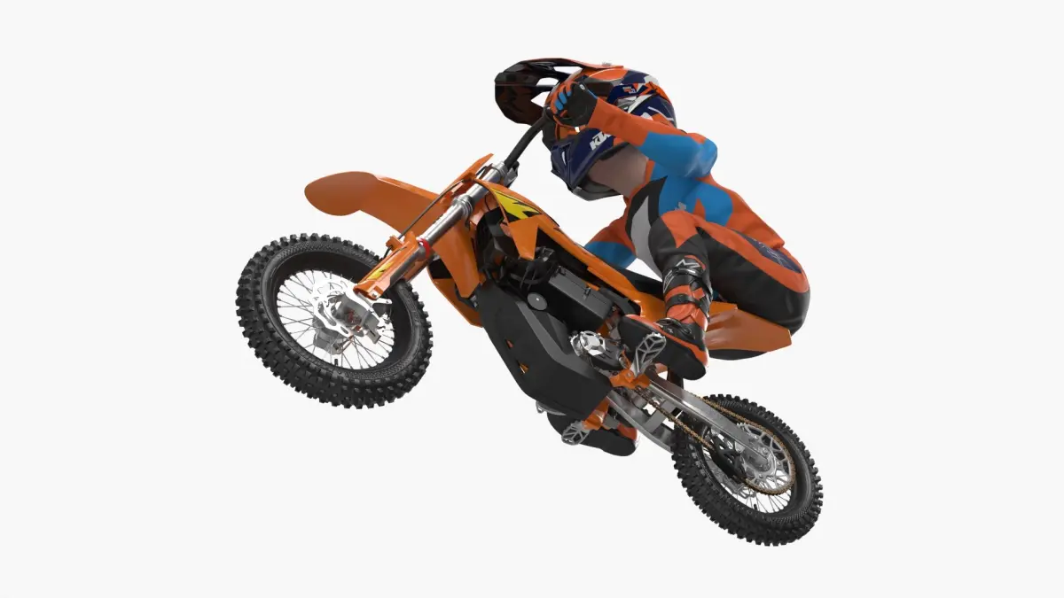 KTM Junior Off Road Motorcycle Rider Crouched is a high quality, photo real 3d model that will enhance detail and realism to any of your rendering projects. The model has a fully textured, detailed design that allows for close-up renders, and was originally modeled in 3ds Max 2020 and rendered with V-Ray. Renders have no postprocessing!
