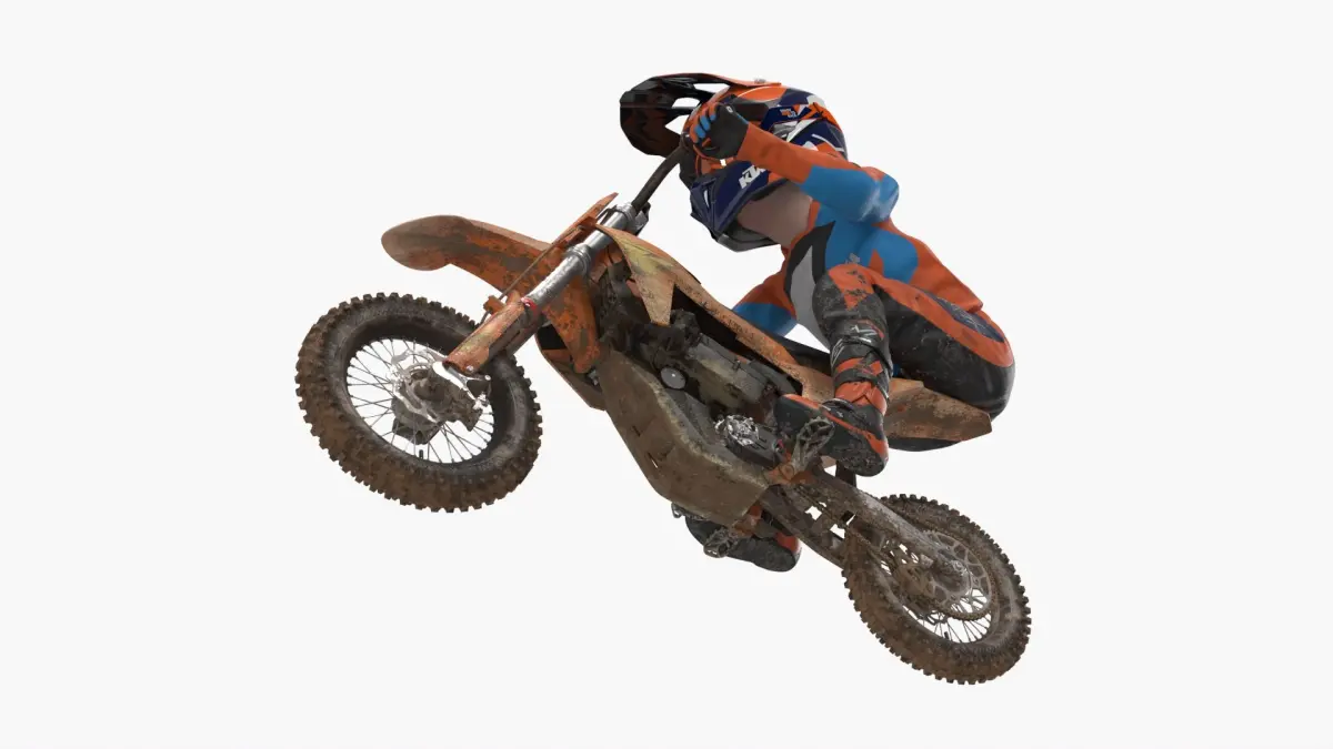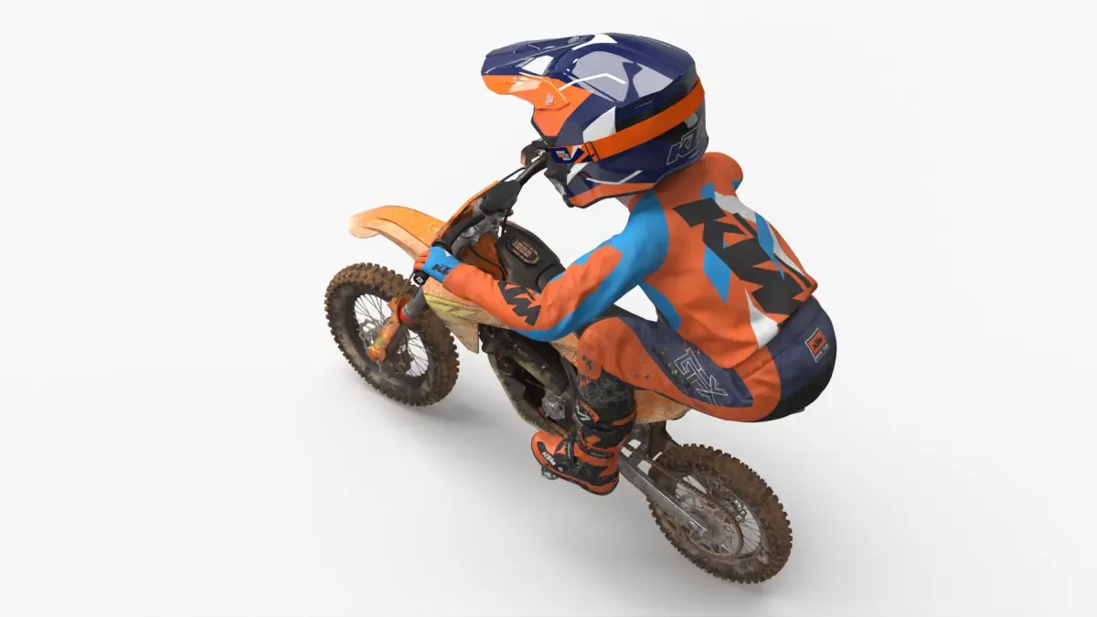 KTM Youth Mini Dirt Bike Rider Muddy Aggressive Position is a high quality, photo real 3d model that will enhance detail and realism to any of your rendering projects. The model has a fully textured, detailed design that allows for close-up renders, and was originally modeled in 3ds Max 2020 and rendered with V-Ray. Renders have no postprocessing!