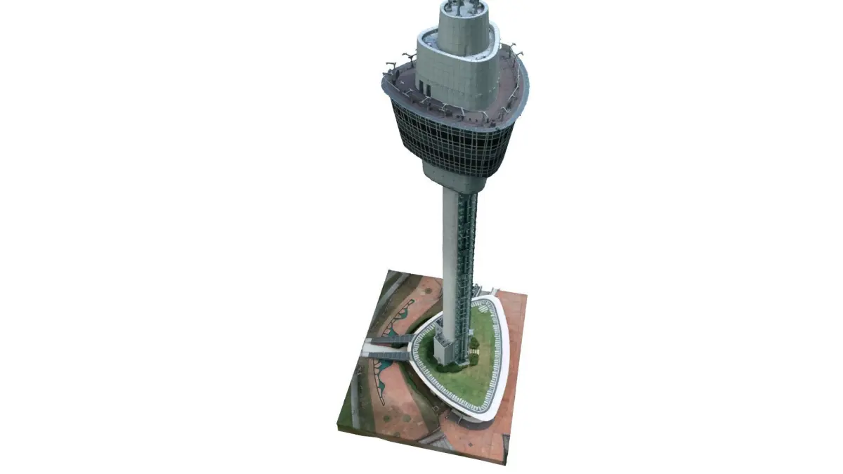 998 images were captured with a DJI Phantom 4 Pro and processed using Reality Capture; the model was then rendered in Blender 3.6