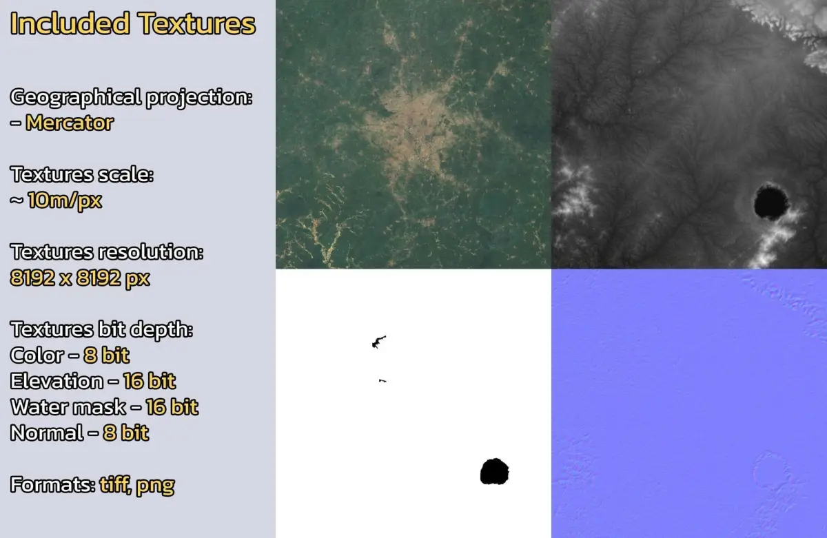 Warning: minor clouds/artifacts may be present on the diffuse color satellite texture due to the nature of the dataset. Check product images.