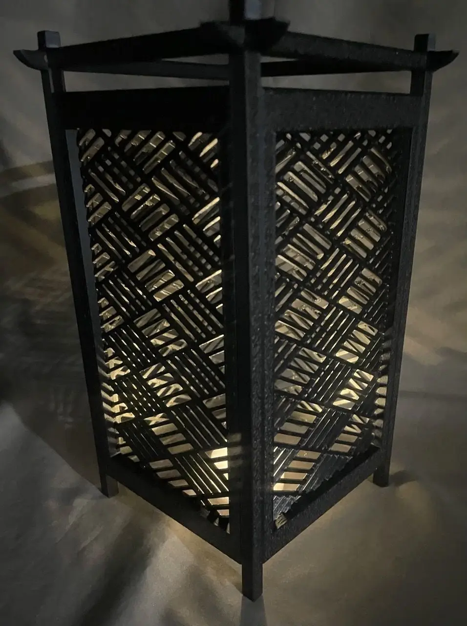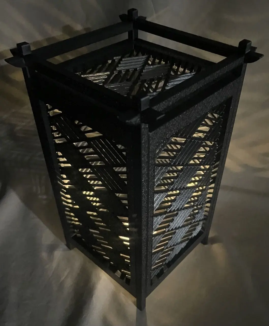 The lantern can be printed with a 0.3 layer height and 10% infill for speed.Generally an interesting surface pattern such as Hilbert Curve to the top surface or such adds a very nice touch to the external faces of the lantern.