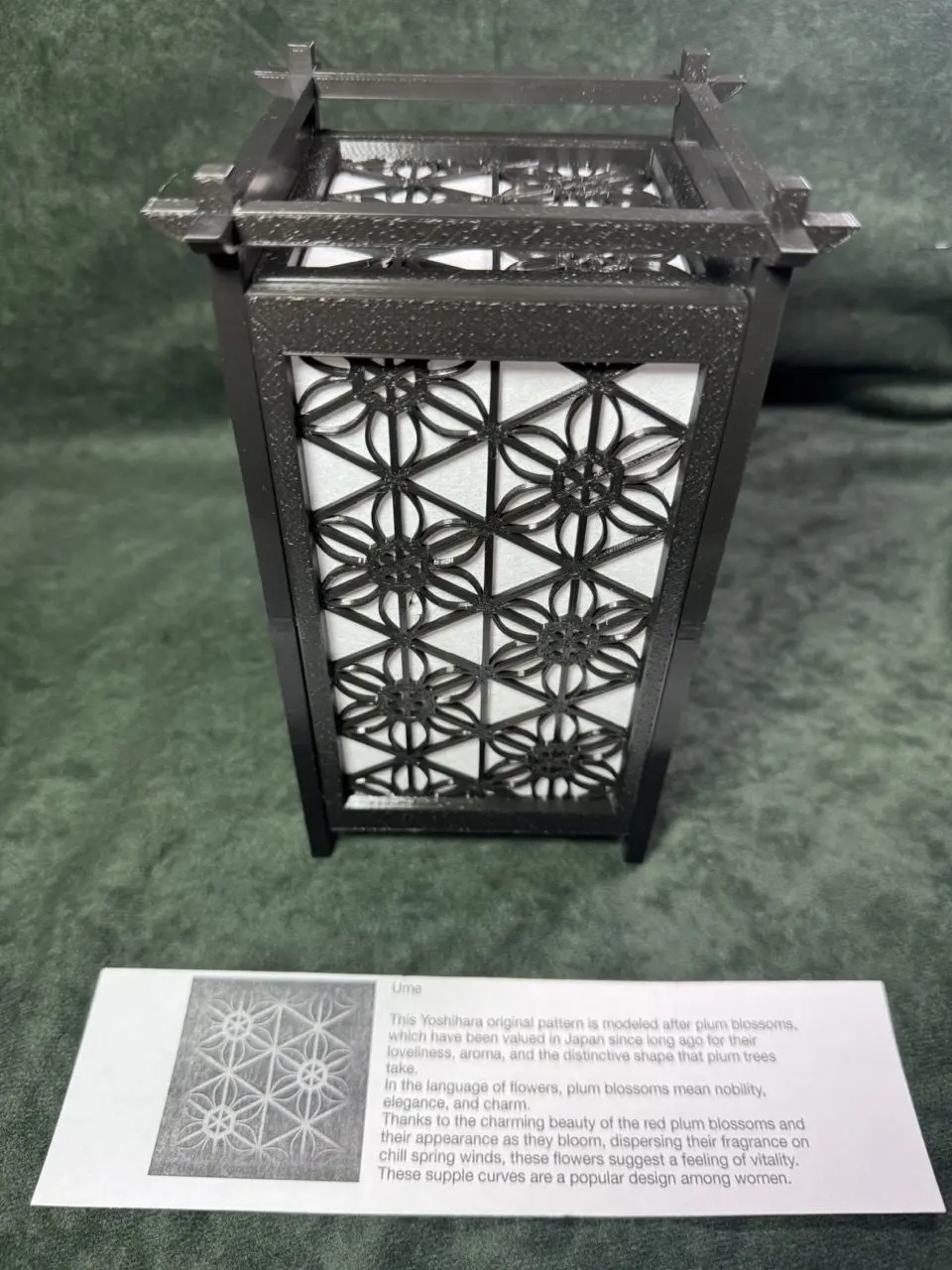 Print a elegant and stylish Japanese Shoji style lantern with Kumiko Ume style pattern.