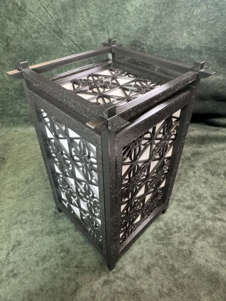 It is important to note that the build plate side of the lantern is inside facing. If the details of the Kumiko have problems on the first layer that can be ignored as they are almost always corrected on subsequent layers and the top outer-facing layer ends up just fine.