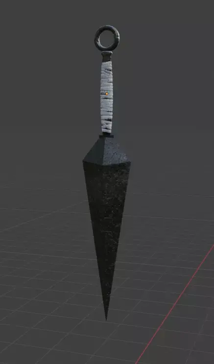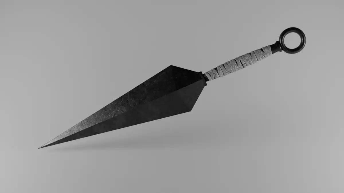 A detailed 3D model of a kunai, a traditional Japanese tool often depicted as a weapon in popular culture. The model is optimized for use in games and real-time applications, featuring clean topology and PBR textures for realistic rendering.