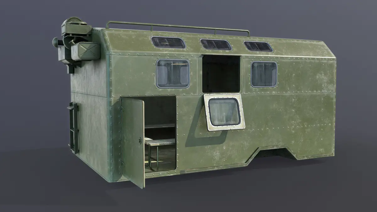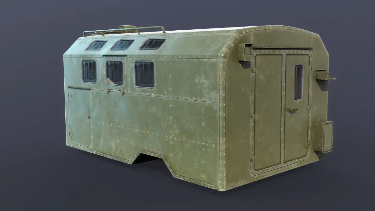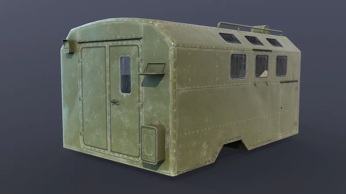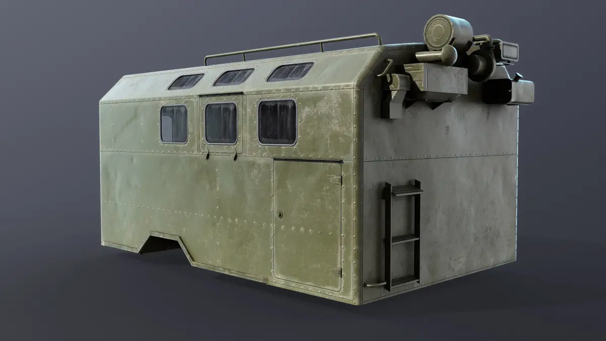 Game low-poly 3d-model. The KUNG is a Soviet then Russian term for a standardized military vehicle module/trailer system.