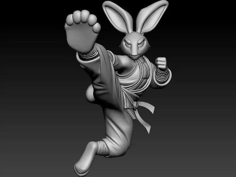 This dynamic kung fu rabbit hip hop pendant 3D model captures explosive motion, street fighter attitude, and fearless urban energy. The sculpt features a stylized rabbit character performing a powerful high kick stance, with detailed martial arts outfit folds and strong body movement that creates an eye-catching action silhouette.