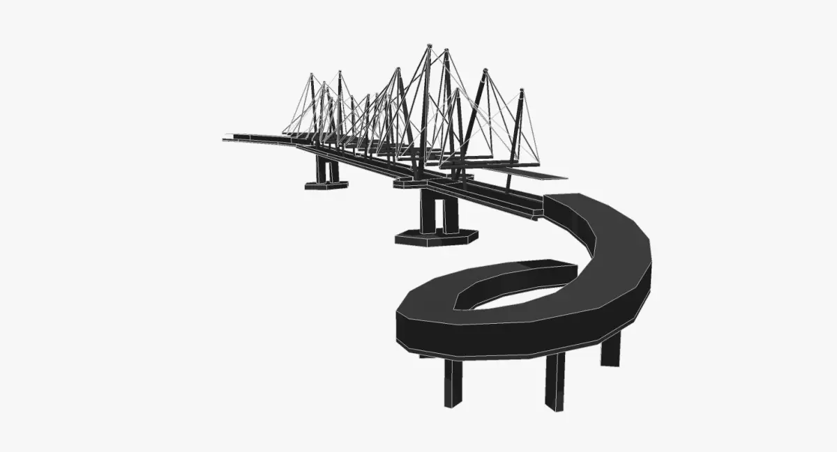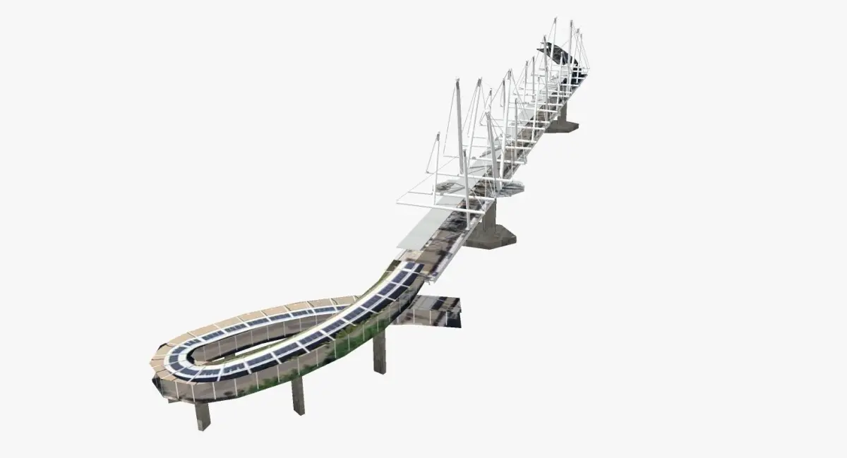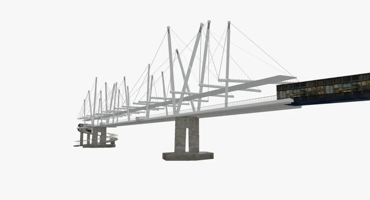 The Kurilpa Bridge (originally known as the Tank Street Bridge) is a AU$ 63 million pedestrian and bicycle bridge over the Brisbane River in Brisbane in Australia. The bridge connects Kurilpa Point in South Brisbane to Tank Street in the Brisbane central business district. The Kurilpa Bridge is a multiple-mast, cable-stay structure based on principles of tensegrity producing a synergy between balanced tension and compression components to create a light structure that is incredibly strong. The bridge is 470m long with a main span of 128m. It is estimated that 550 tons of structural steel including 6.8 km of spiral strand cable are incorporated into the bridge. The bridge is lit with a sophisticated LED lighting system which can be programmed to produce an array of different lighting effects. Depending on lighting configurations, 75%-100% of the power required is provided by solar energy. All electrical work was done by Stowe Australia. Kurilpa Bridge is the world’s largest tensegrity bridge. Baulderstone Queensland Pty Ltd constructed the bridge and the company’s design team included Cox Rayner Architects and Arup Engineers.