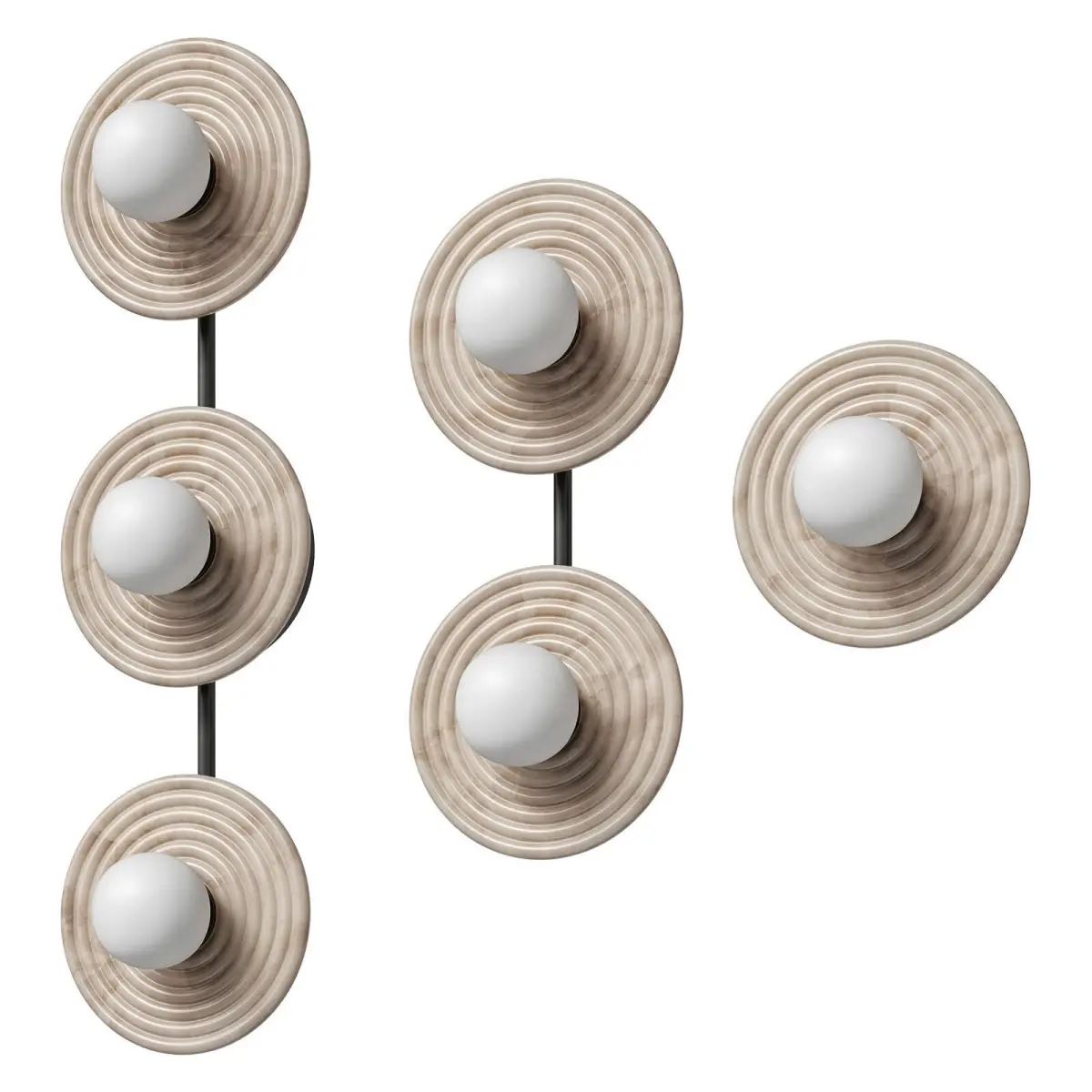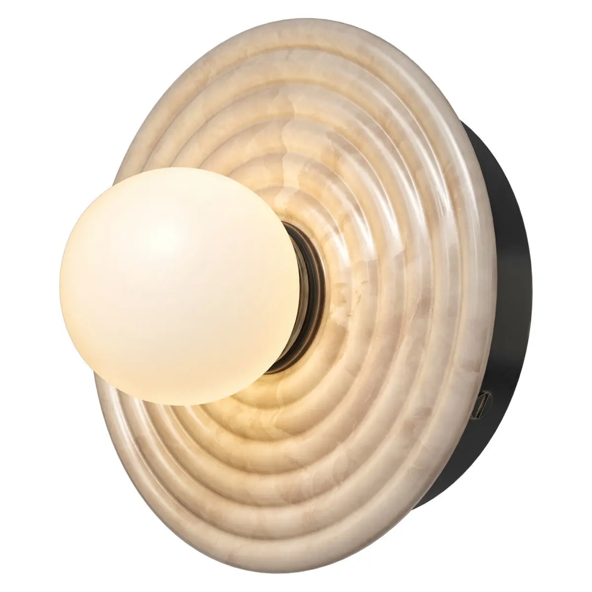 The Dahlia collection draws inspiration from flowers and all things biophilic. Stunning ribbed alabaster slabs, adorned with delicate opal glass pearls, create the perfect diffused light. Each piece of Dahlia is carefully forged to create a luxurious look that is sure to stand the test of time. *Alabaster boasts distinct variations in both veining and tone, a unique characteristic of the timeless natural material. No two pieces will look exactly the same.