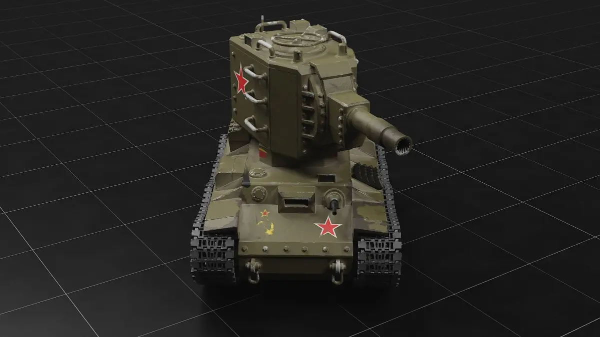 The 3D model is a toon-style representation of the real-world KV-2 tank from the USSR. It maintains the distinctive design elements of the original tank, including a large turret and a compact body. The overall style of the model emphasizes its cuteness while staying true to the KV-2’s authentic appearance.