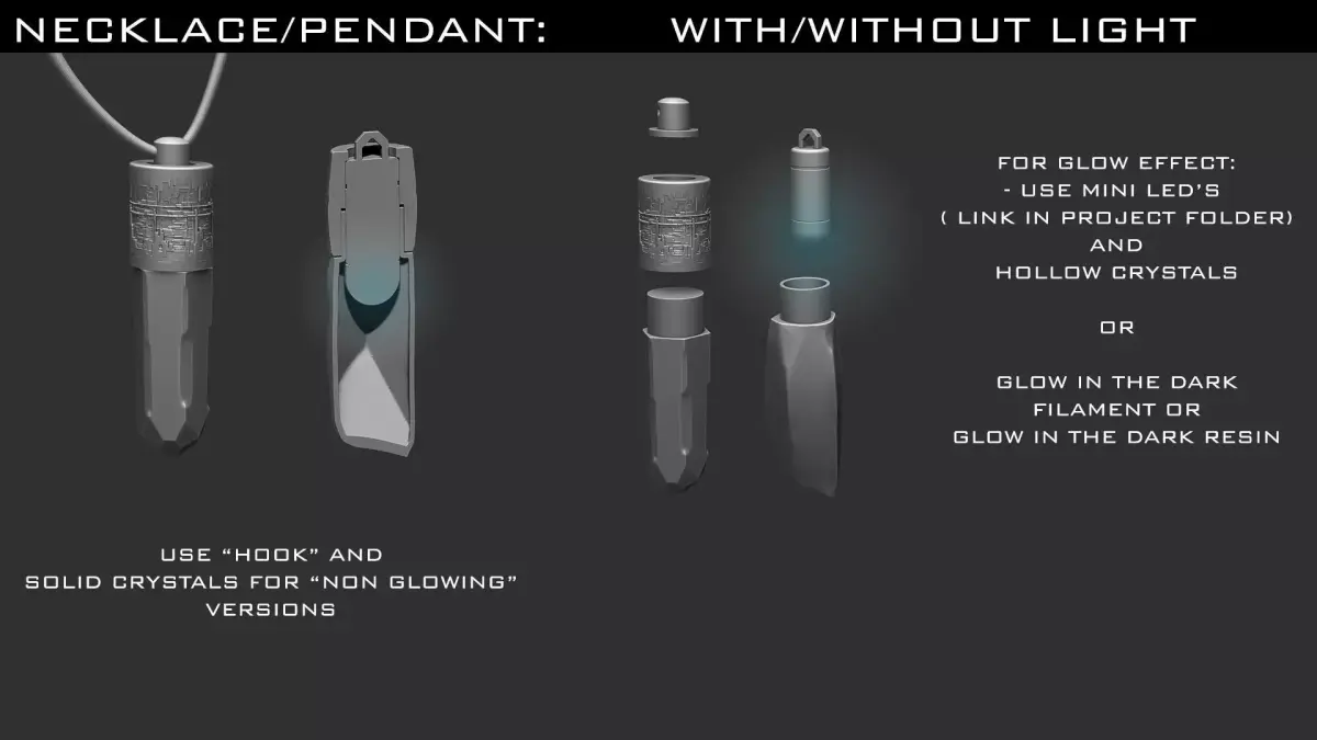 - you can choose to print either solid or hollow, glow in the dark filament, glow in the dark resin or just a standard resin or PLA - all options are included, so you get to pick what you like the most :)