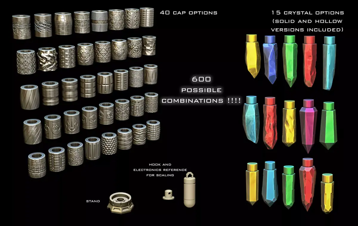 - you can make a total of 600 COMBINATIONS between the 40 caps and 15 crystal version
