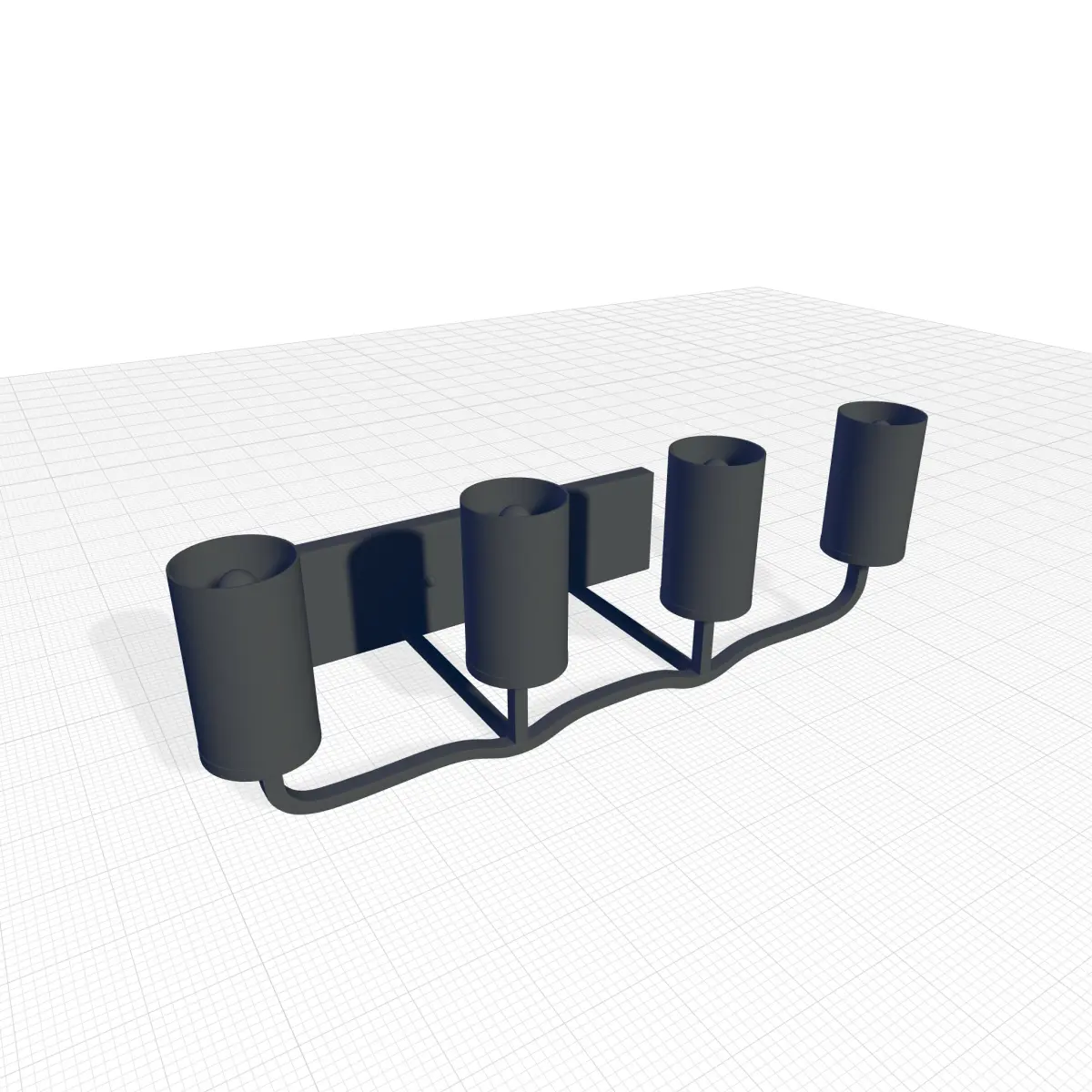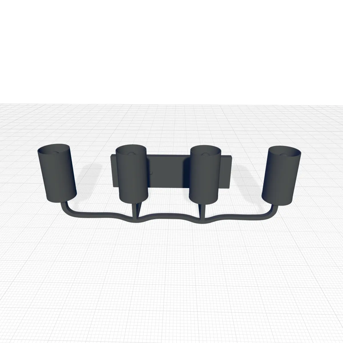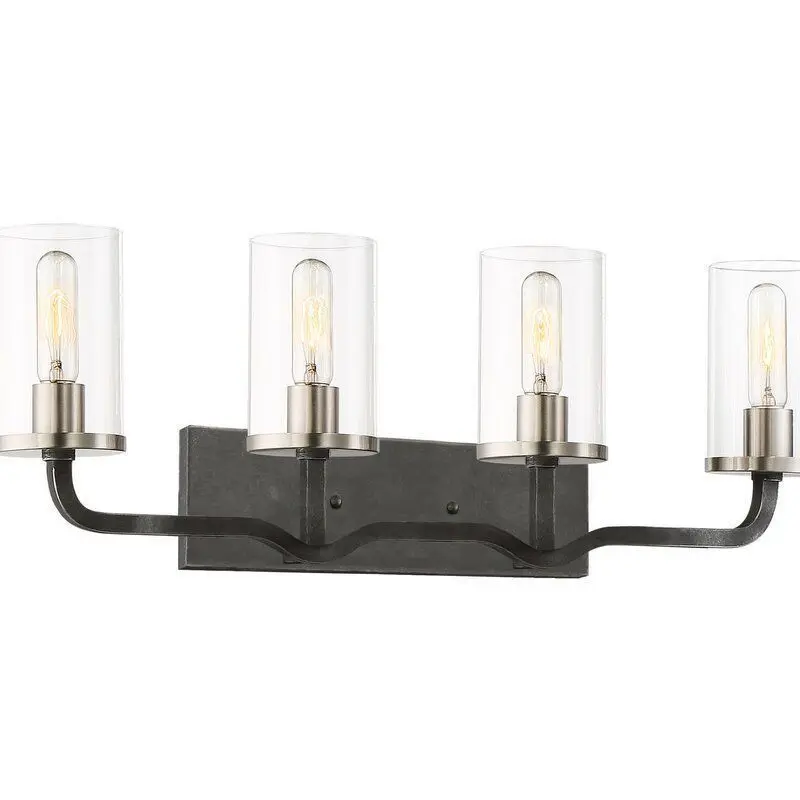 - With its curved arms and sleek glass shades, this four-light metal vanity light adds a sophisticated touch to your luminary ensemble. Its brushed nickel details bring shimmering style to your decor, while its iron black finish is perfect set against a crisp white wall for a contrasting look. Lean into this piece's versatility by adding it to a master bath arrangement for a touch of industrial flair.