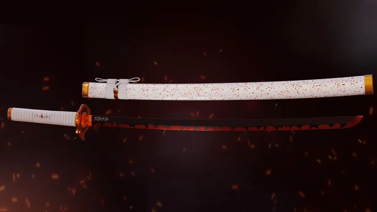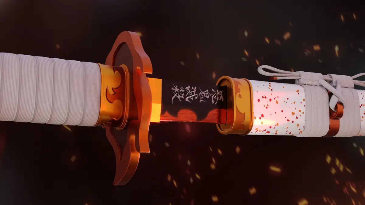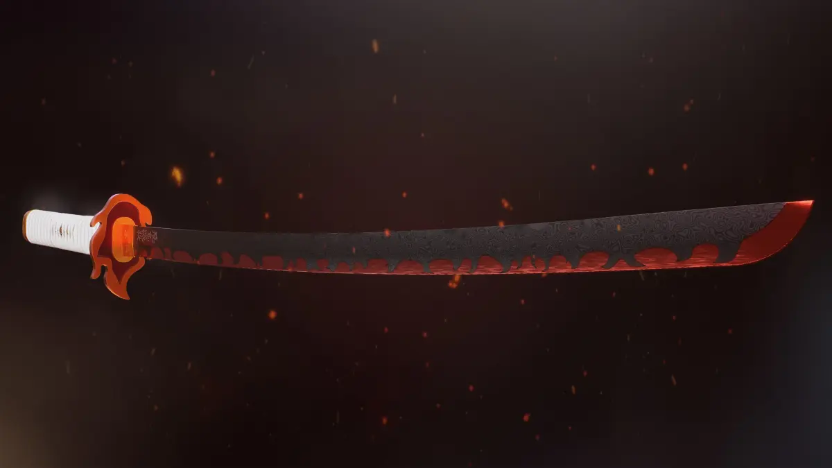 This is a Fanart made by me from the katana of Kyojuro Rengoku the flame hashira from Kimetsuno no Yaiba (Demon Slayer) anime. He is my personal favorite hashira from the anime, so after seeing the movie I decided to make this Katana in a more realistic style as an exercise.