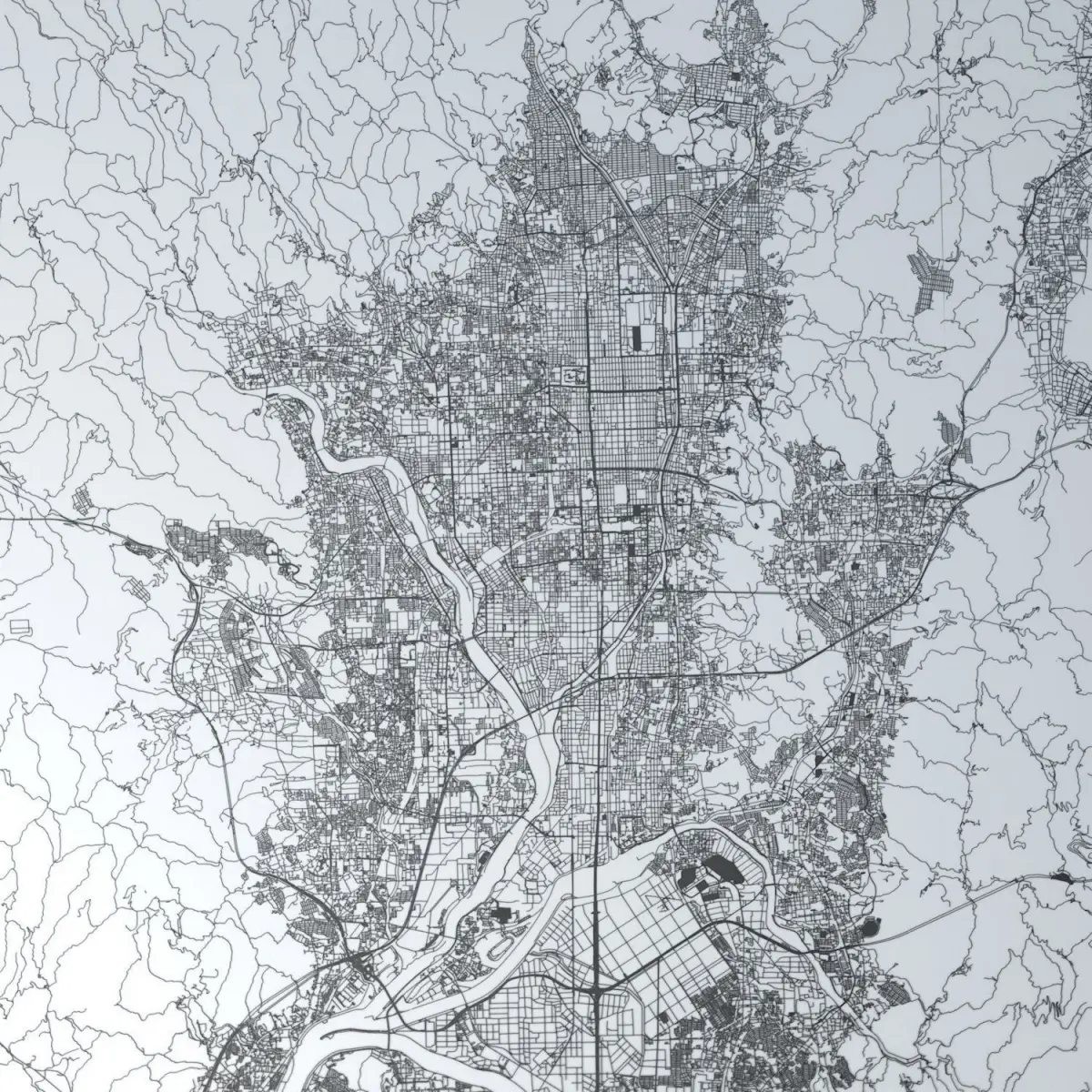 - this model is based on real data therefore this is a realistic road network and streets setup of Kyoto, Japan